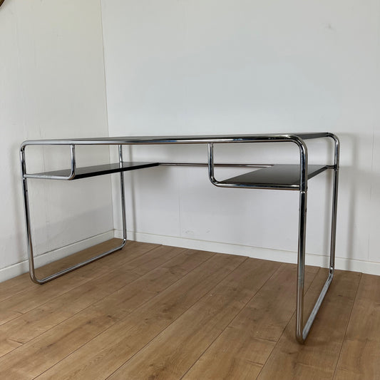 Bureau style Bauhaus en acier tubulaire et plateau en bois laqué noir, 1980