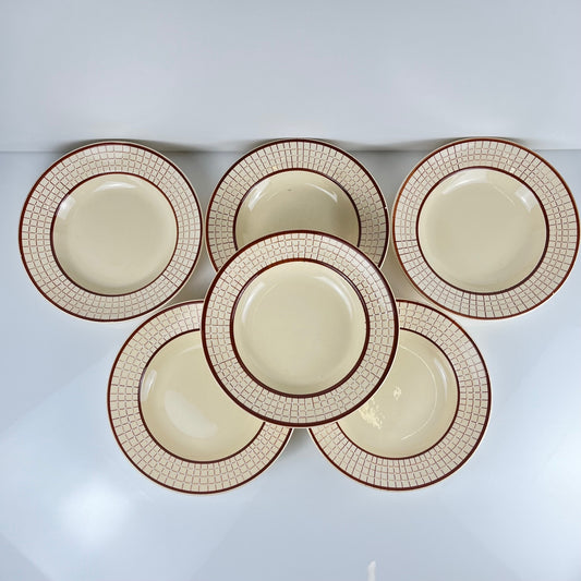 Set de 7 assiettes creuses Lustucru ,damier bleu , 1950/80