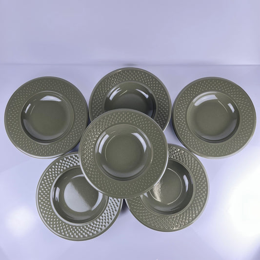Set de 6 assiettes creuses Genevieve Lethu modèle "Grain de riz" vert