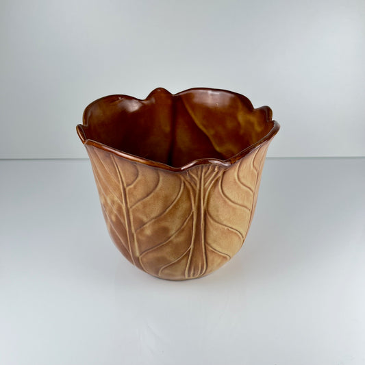 Cache-pot en faïence brune effet feuille nervurée, 1960/70