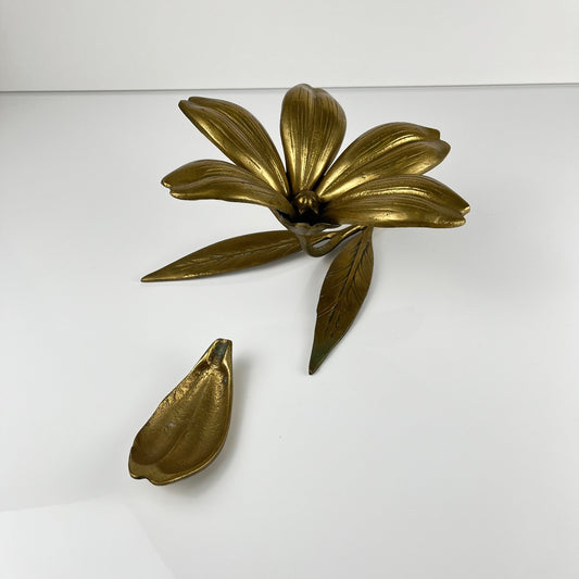 Cache-pot en faïence brune effet feuille nervurée, 1960/70