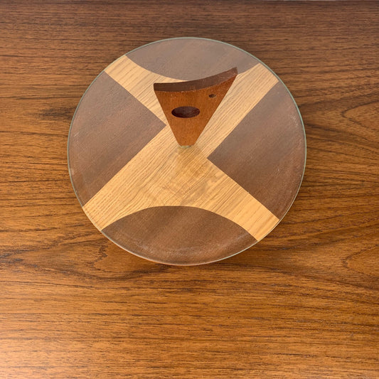 Plateau tournant en bois et verre midcentury modern