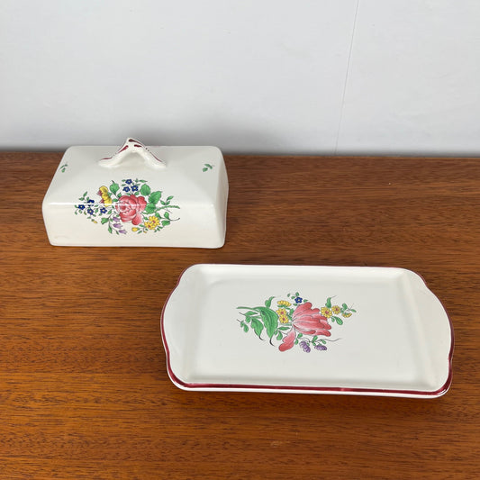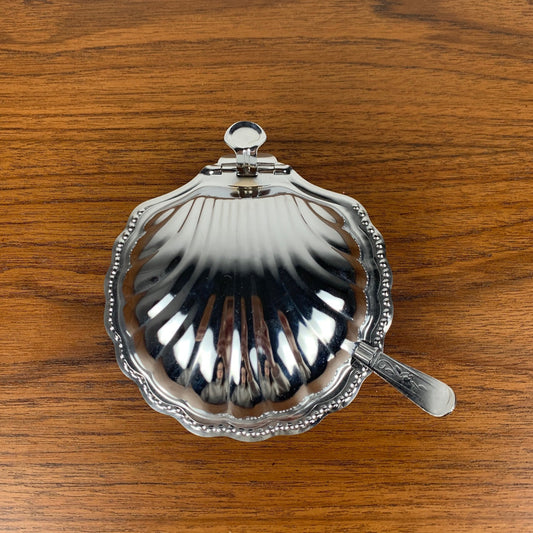 Beurrier coquillage avec couteau vintage, métal argenté et insert blanc