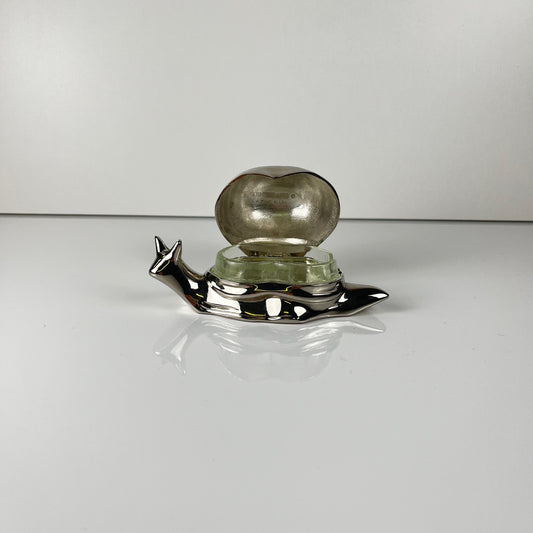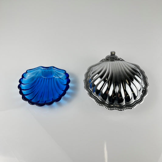Beurrier coquillage en métal argenté et insert bleu, 1970
