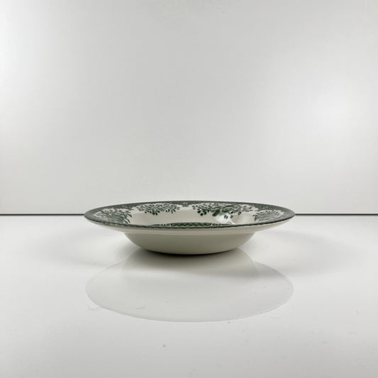 2 assiettes creuses anciennes faïence anglaise verte, fin XIXe