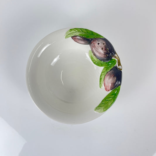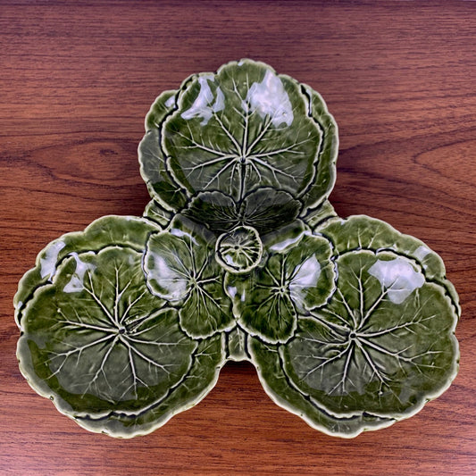 Petit ravier St Amand Ceranor, motif fleur vert foncé