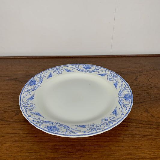 Plat ancien en faïence bleue, décor floral et oiseaux, début XXe