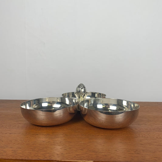 Plat apéritif 3 compartiments en métal argenté, 1970