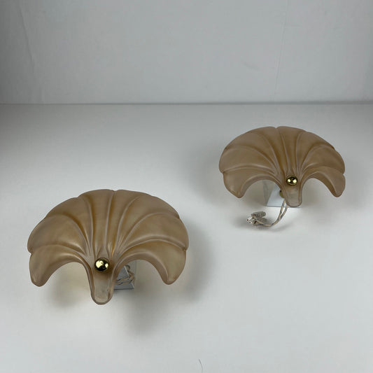 Pair of vintage shell wall lights in glass paste, Art Deco style