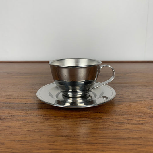 Set of 6 stainless steel coffee cups / saucers NPB Italy, 1980