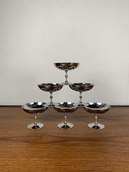 Set of 6 stainless steel ice cream/dessert cups, high foot, 1970