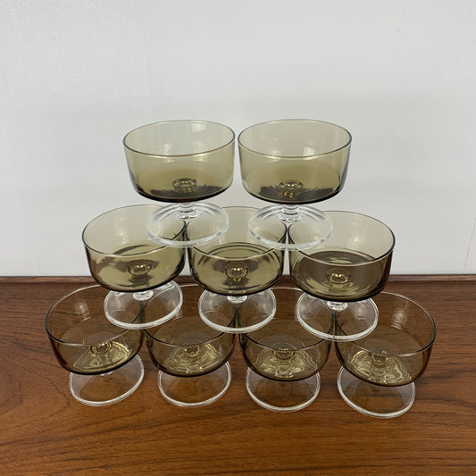 Set of 9 smoked glass champagne glasses, 1970