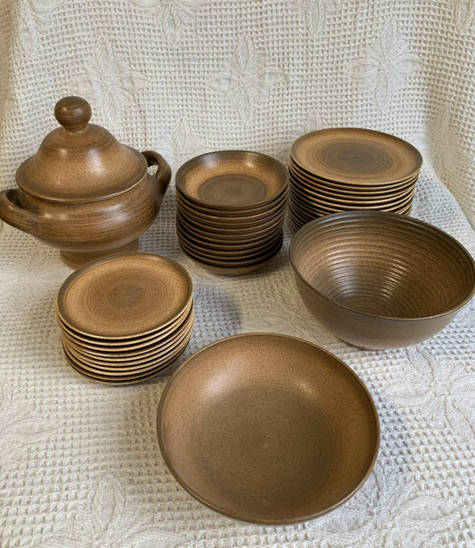 Lot of 8 Large Longchamp glazed stoneware plates, 1970