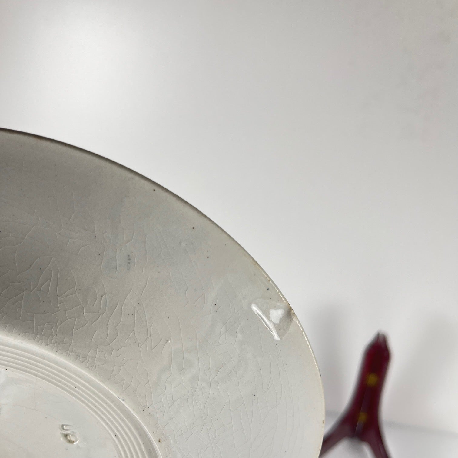 Antique item, over 100 years old, retains its patina, with minor scratches and some enamel loss in places. One plate has a chip; see photos.