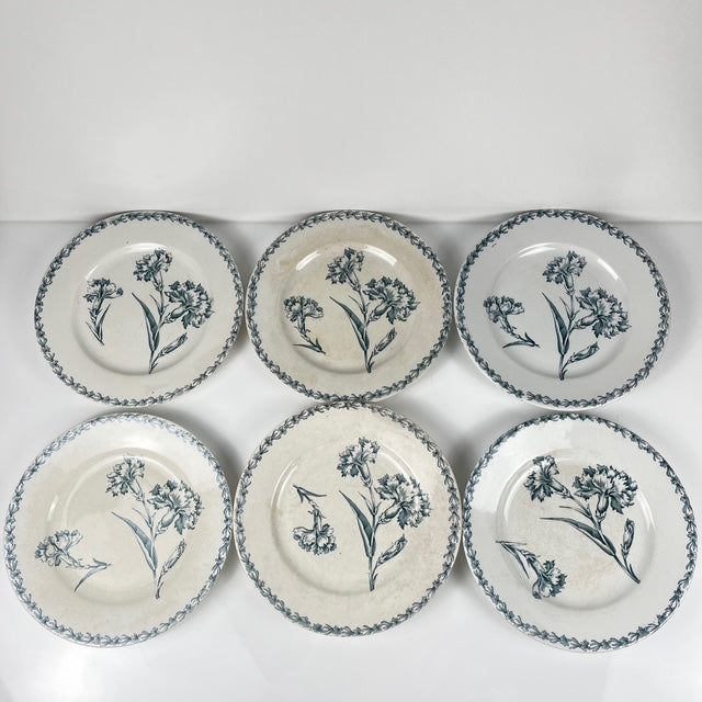 Set of 6 dessert plates, "Oeillet" pattern, KG Lunéville, ironstone, 19th century