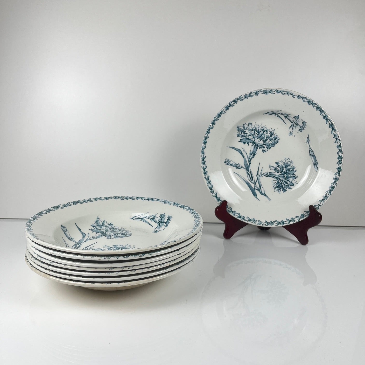 Set of 8 soup plates, "Oeillet" pattern, KG Lunéville, ironstone, 19th century
