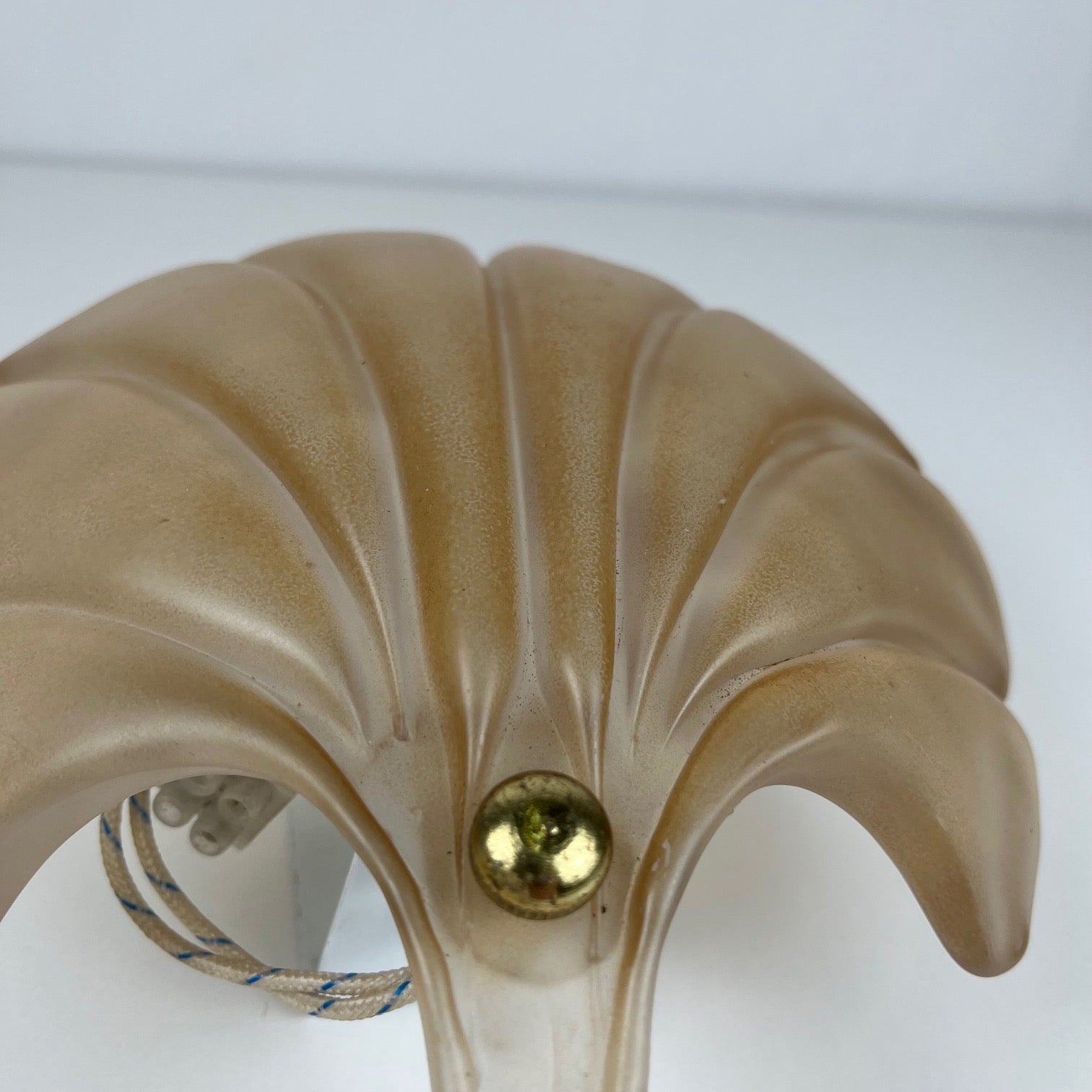 Good vintage condition, no cracks. The glass is uniform, soft to the touch with a beautiful luminous rendering. Some micro scratches on the glass and traces of age on the brass (see photos)