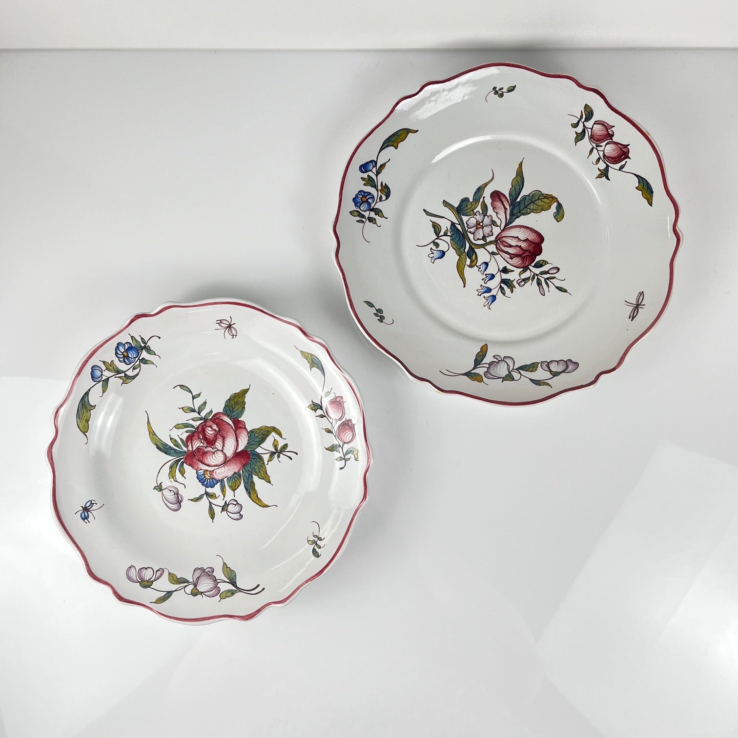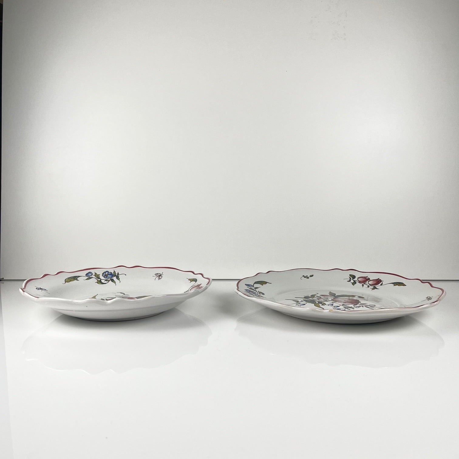 Set of 2 hand-painted ceramic dishes with flower pattern