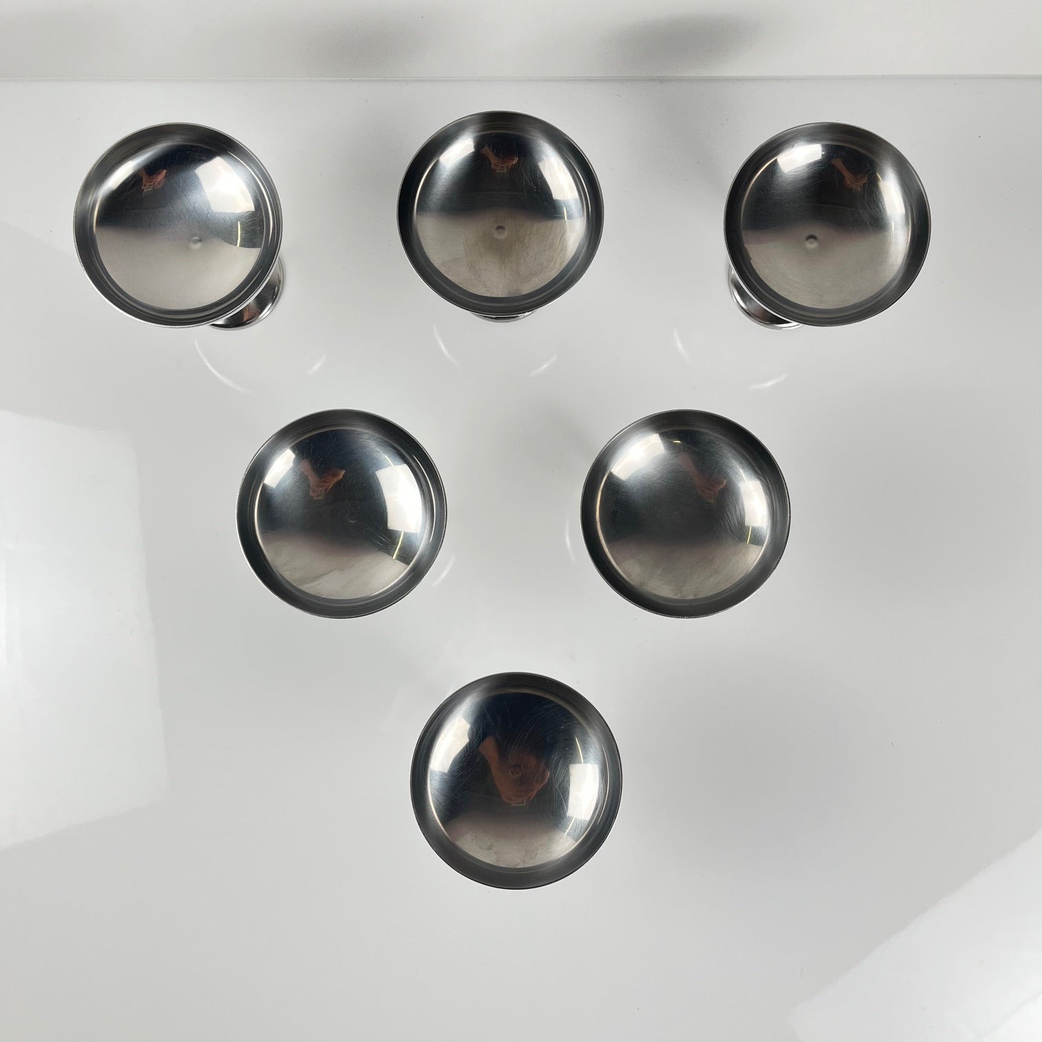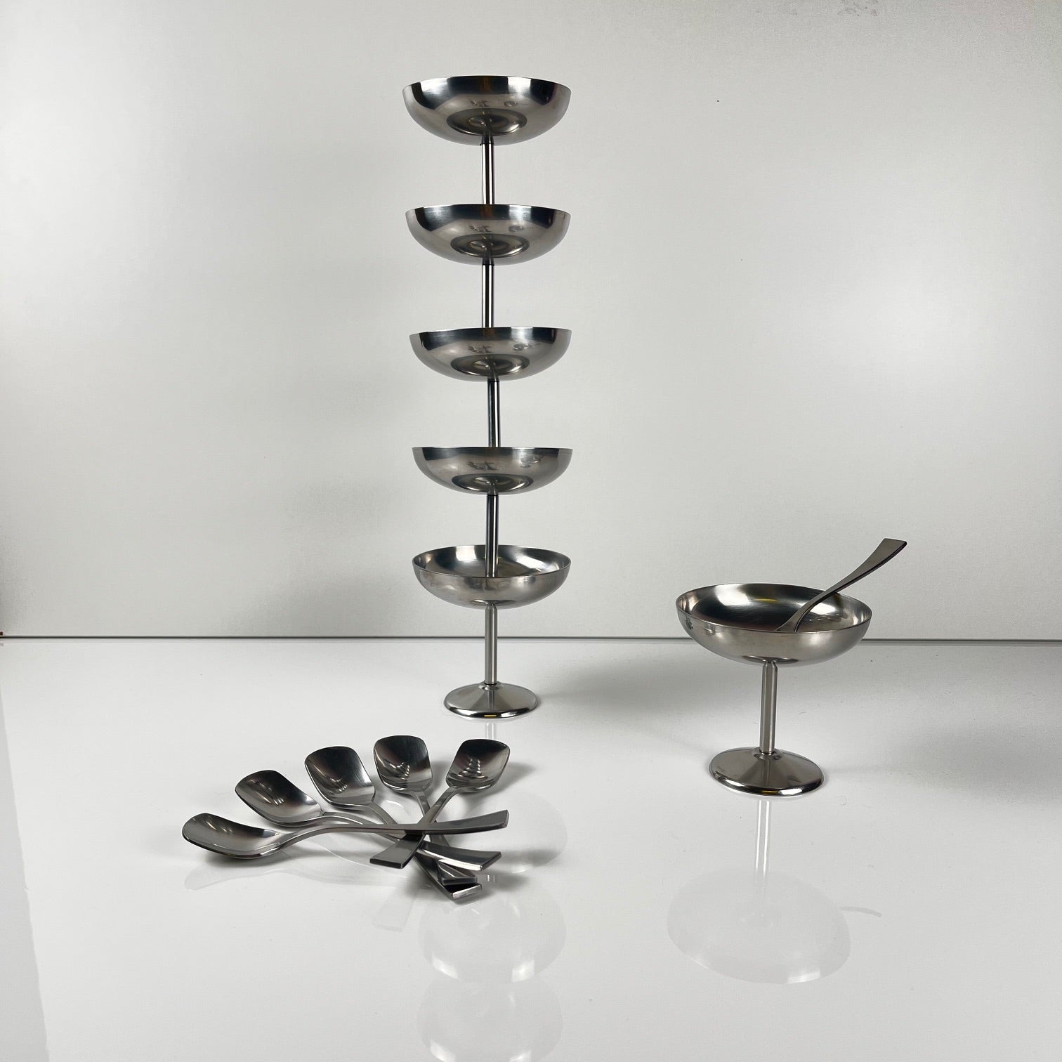 Set of 6 Guy Degrenne stainless steel ice cream cups with spoon
