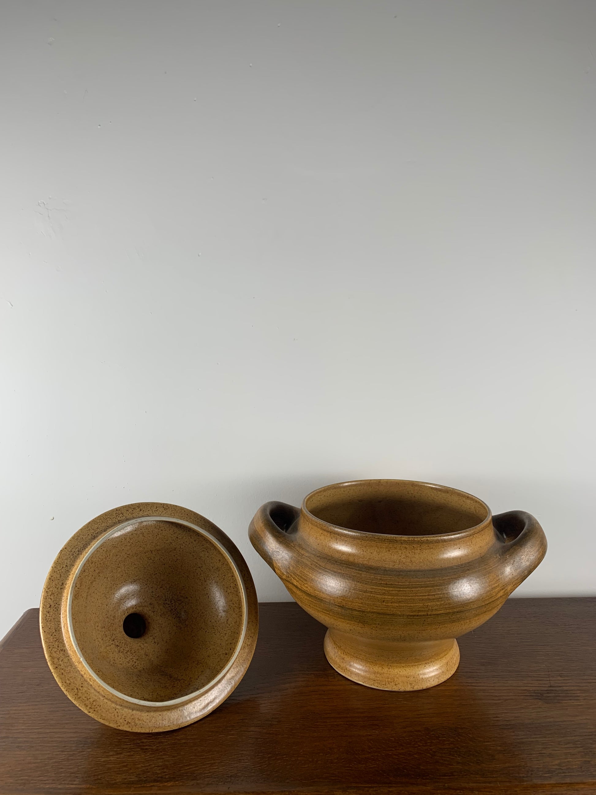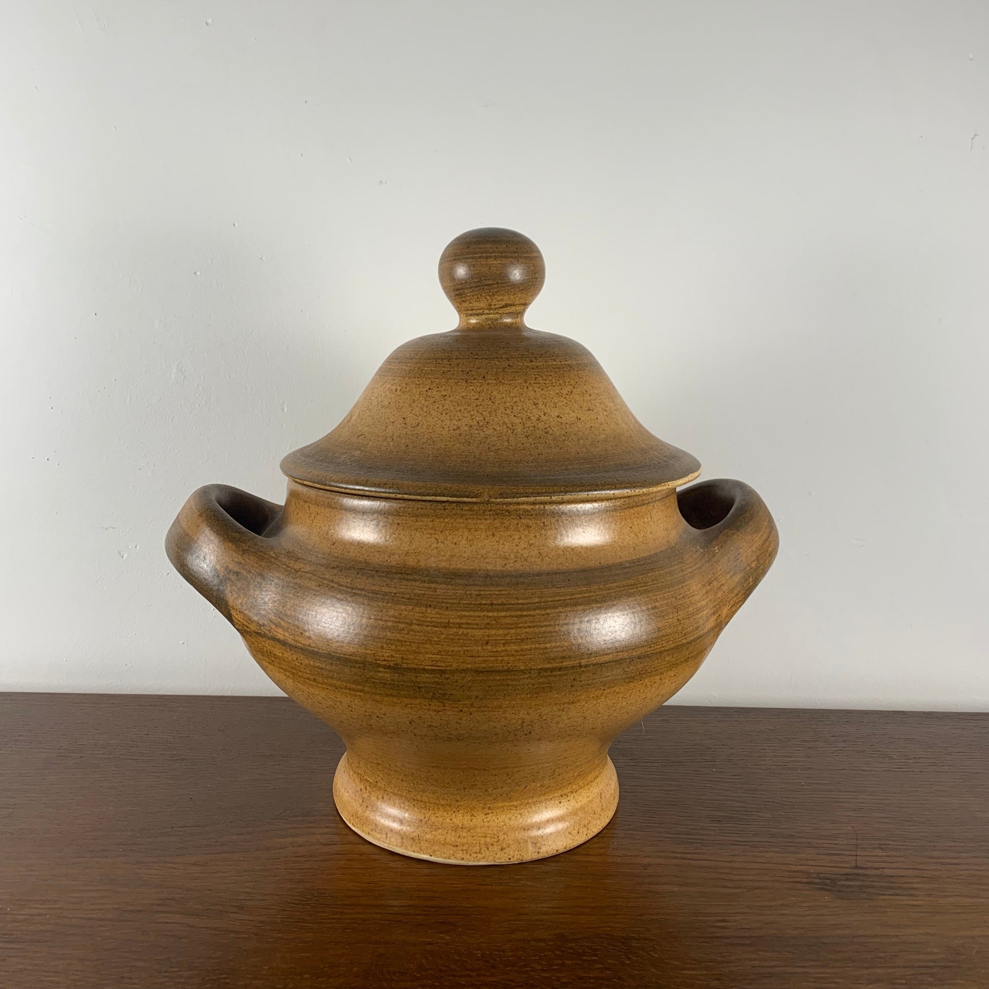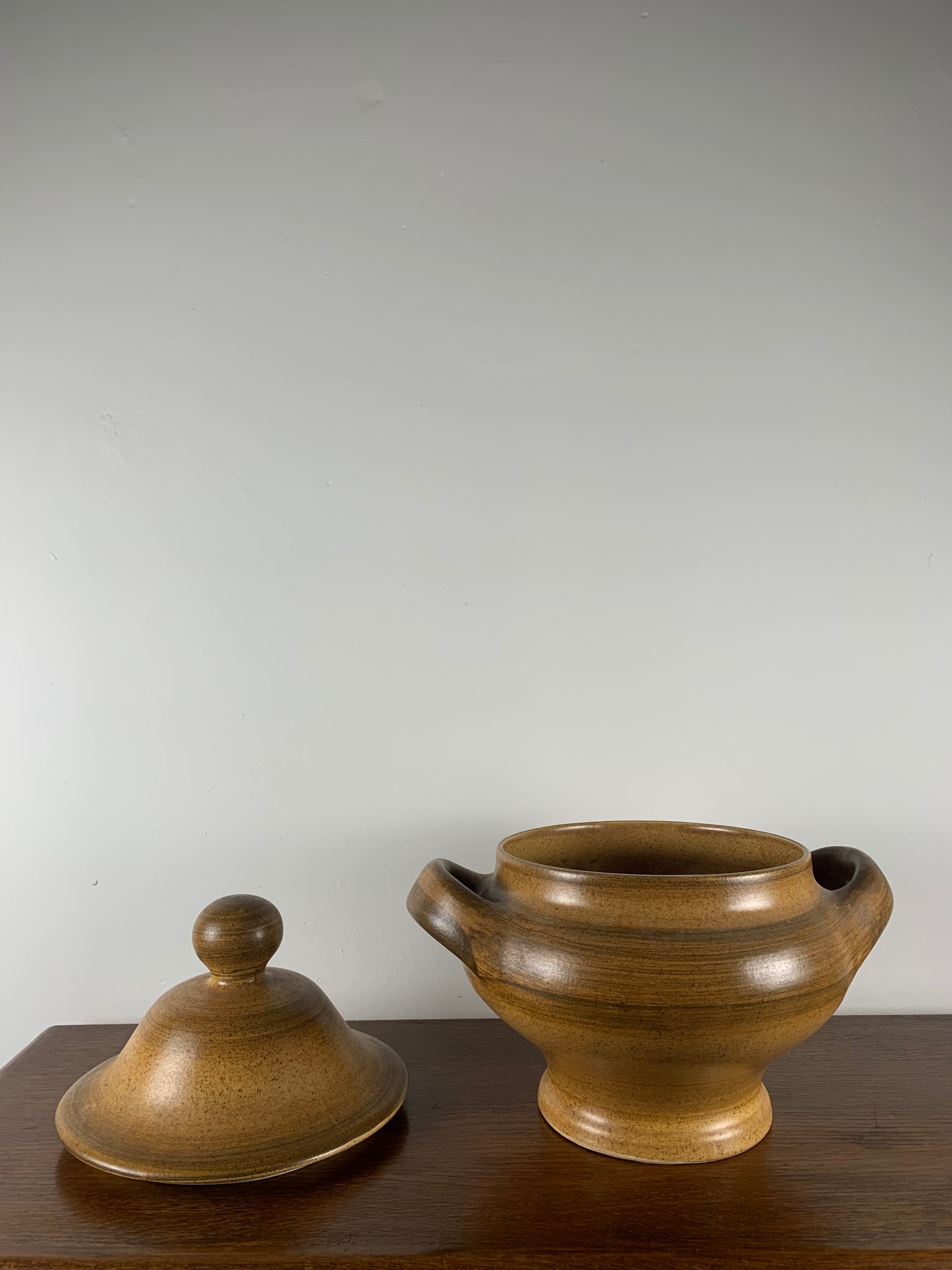 Longchamp glazed stoneware soup tureen, dating from the 1970s, in brown tones