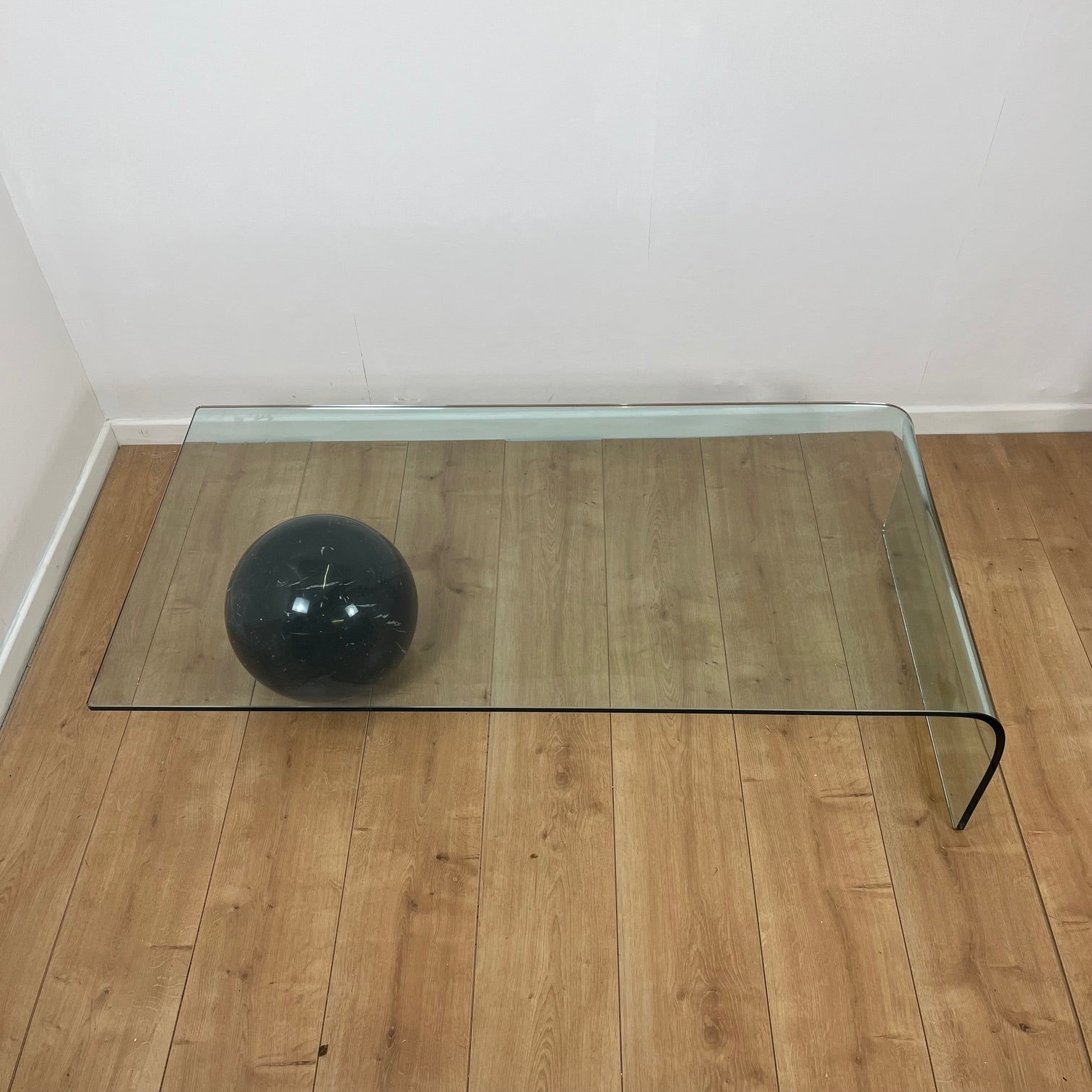 Coffee table in curved glass and black marble sphere, Giorgio Cattelan for Cattelan, 1980
