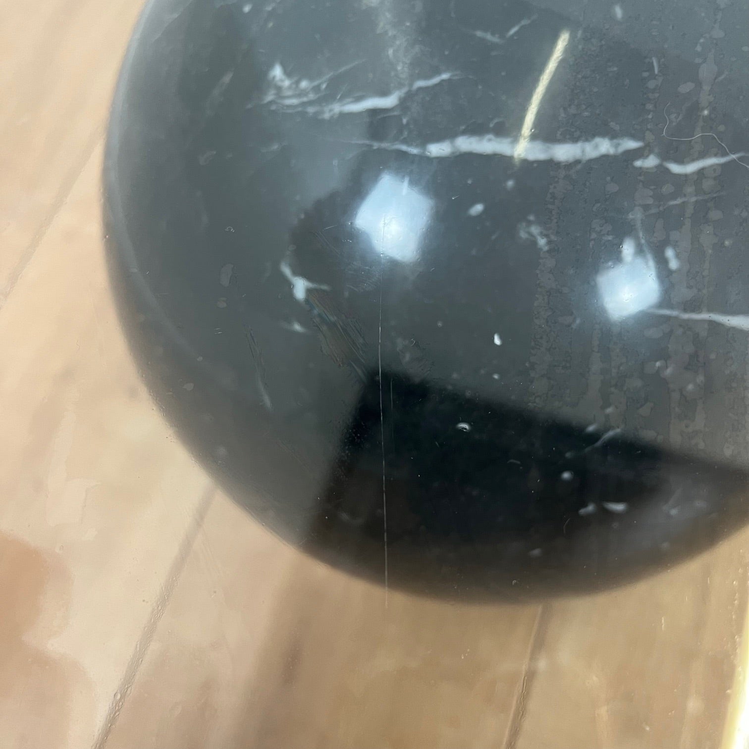 Polished black MARUQINA marble sphere, 28cm in diameter