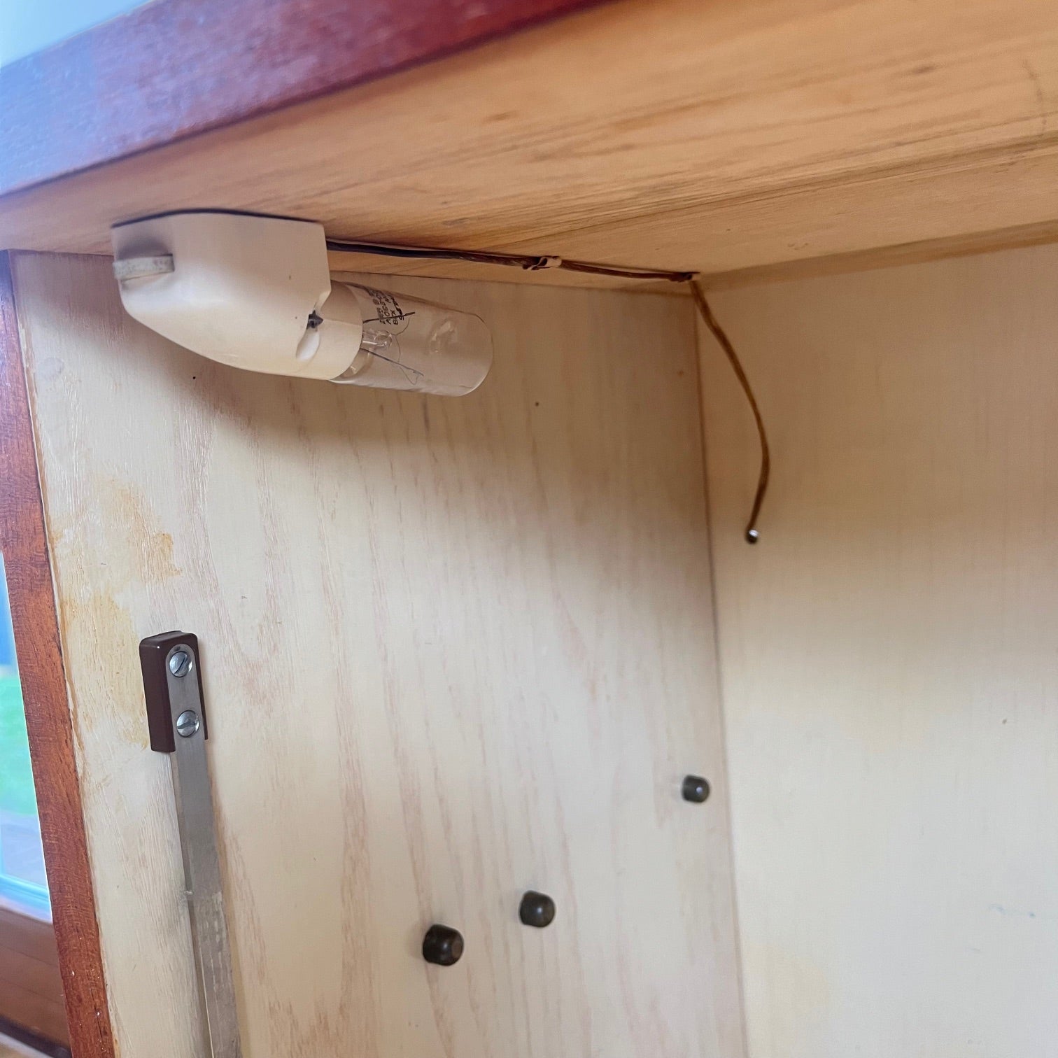 Bon état général pour son âge, objet vintage, conserve des traces du temps : décoloration, micro rayure, tâches, manque de placage dont un endroit au dessus du tiroir de droite, voir photos