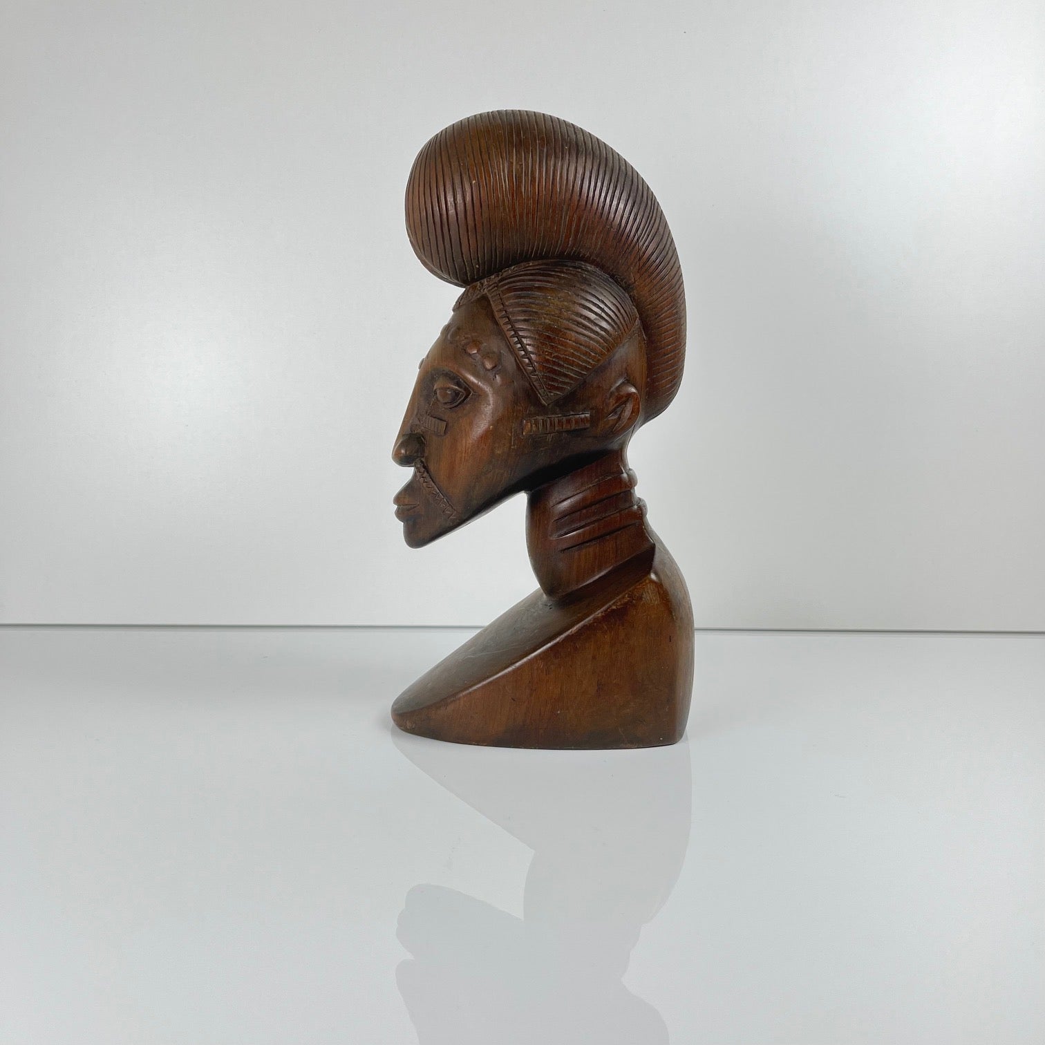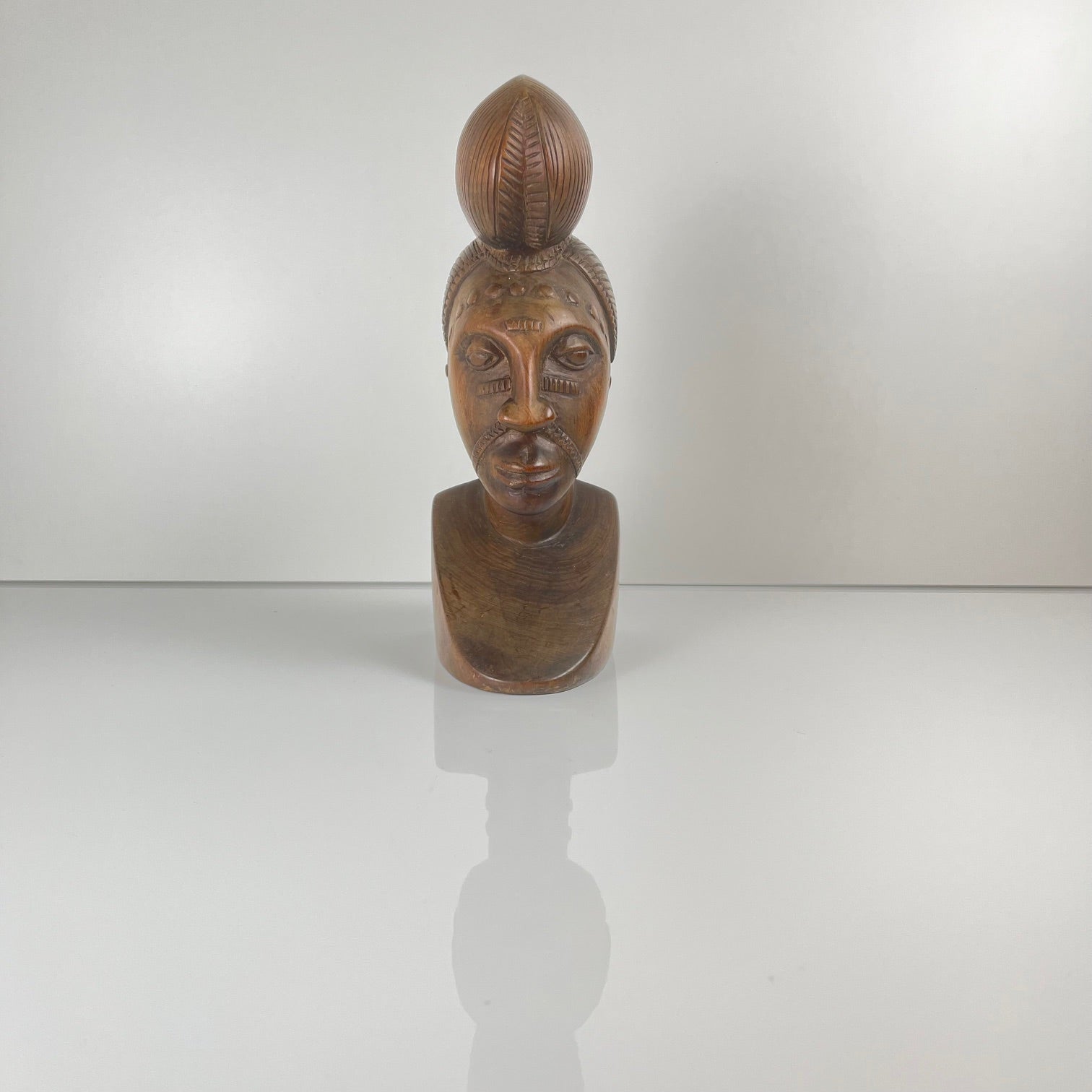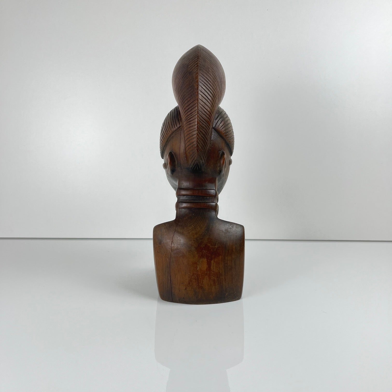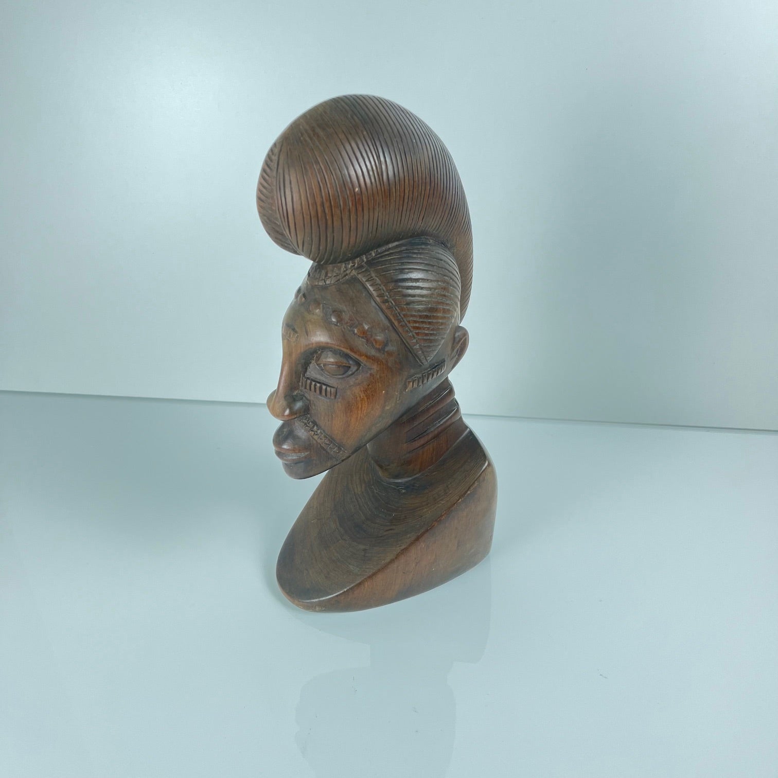 Buste féminin sculpté à la main en bois noir, style Baoulé, 1960/90