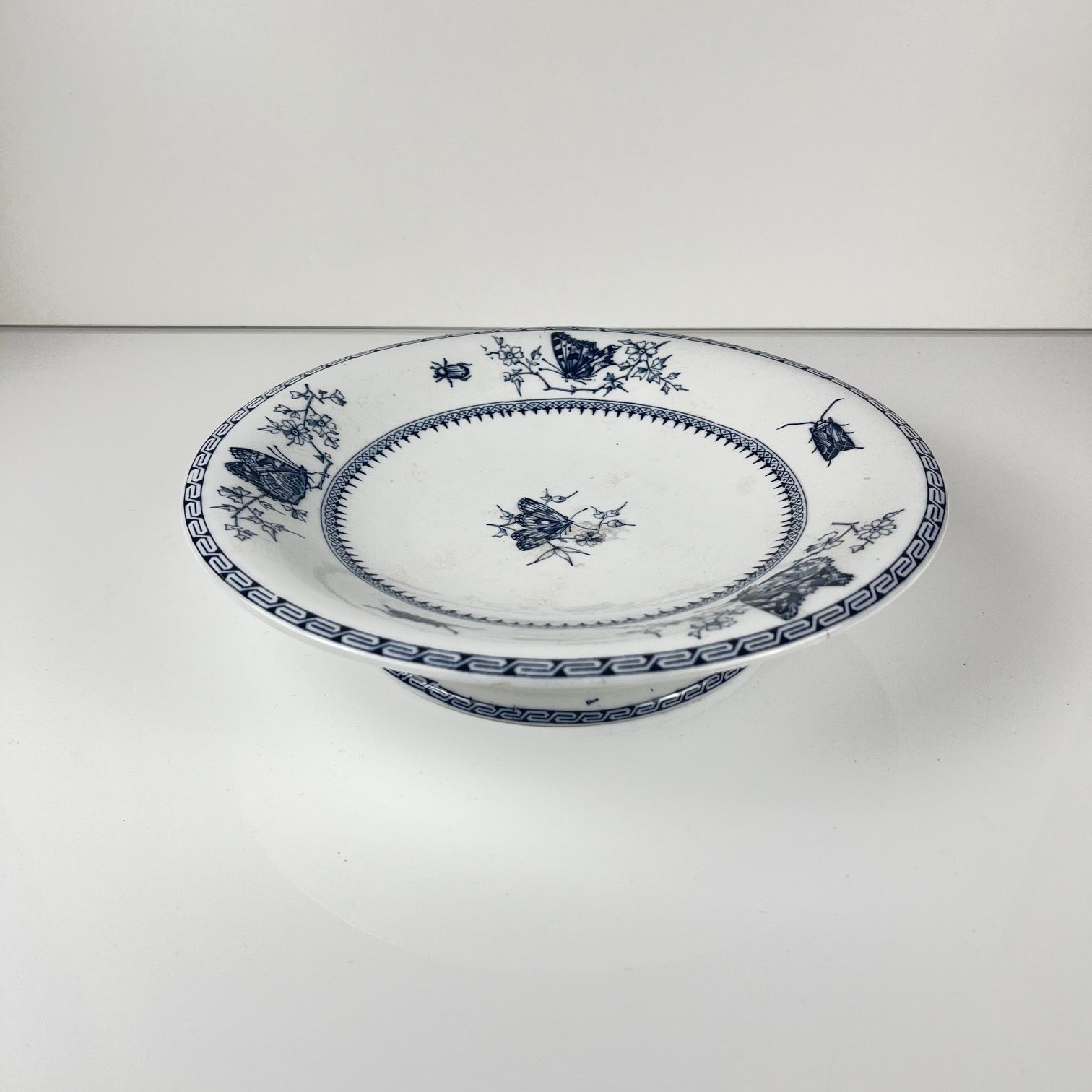 Compotier bas sur piédouche "Butterfly" bleu par Minton & co, Angleterre, XIXe