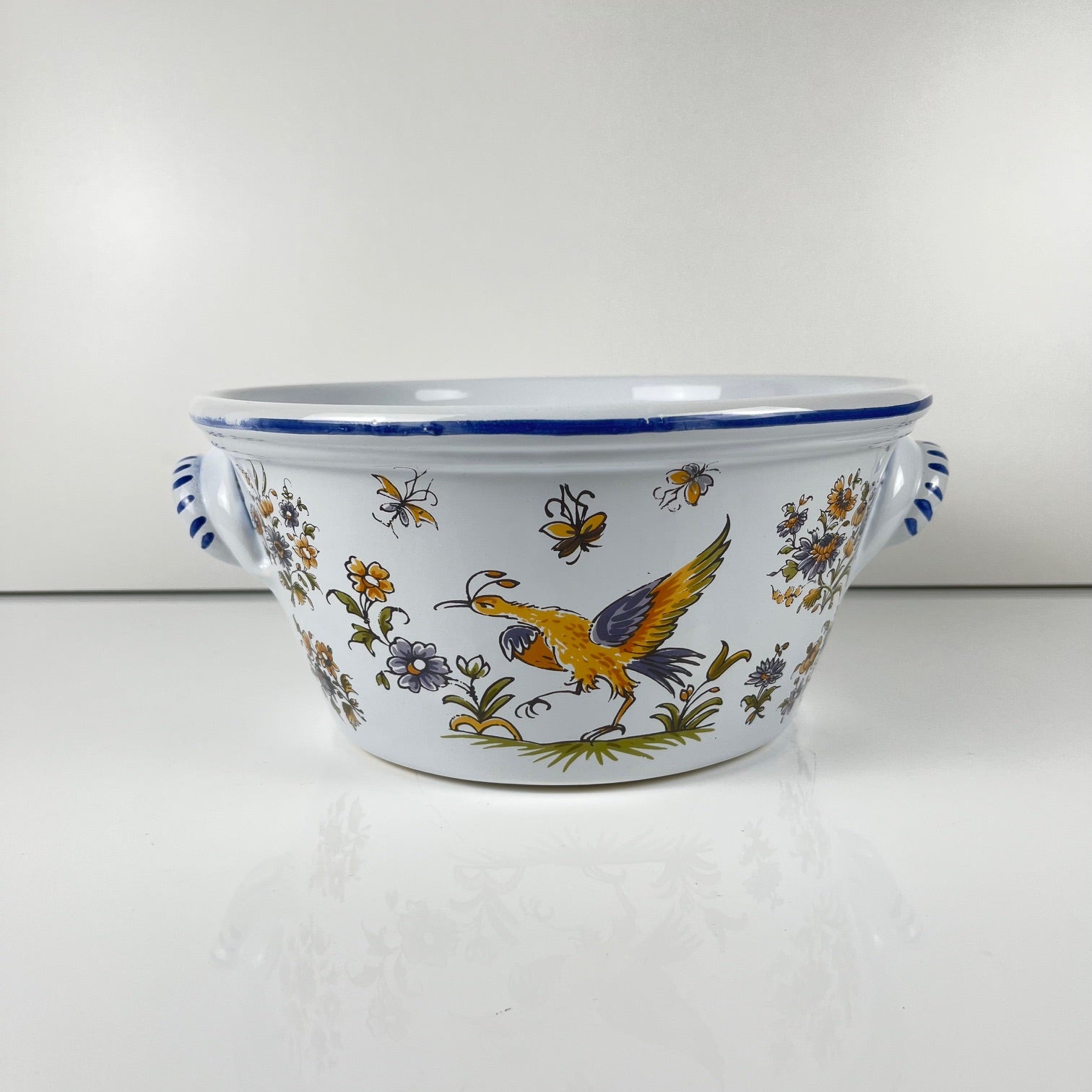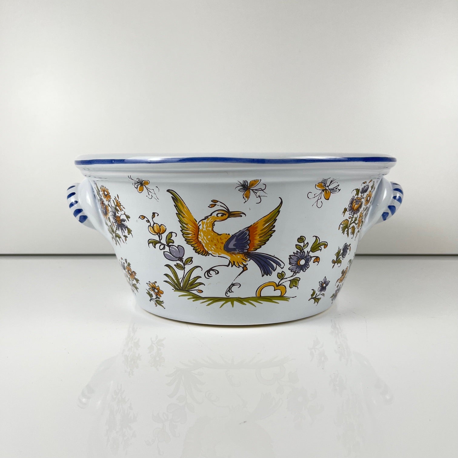 Grand Saladier en faïence peinte à la main, signé “Moustiers” au revers, XXe