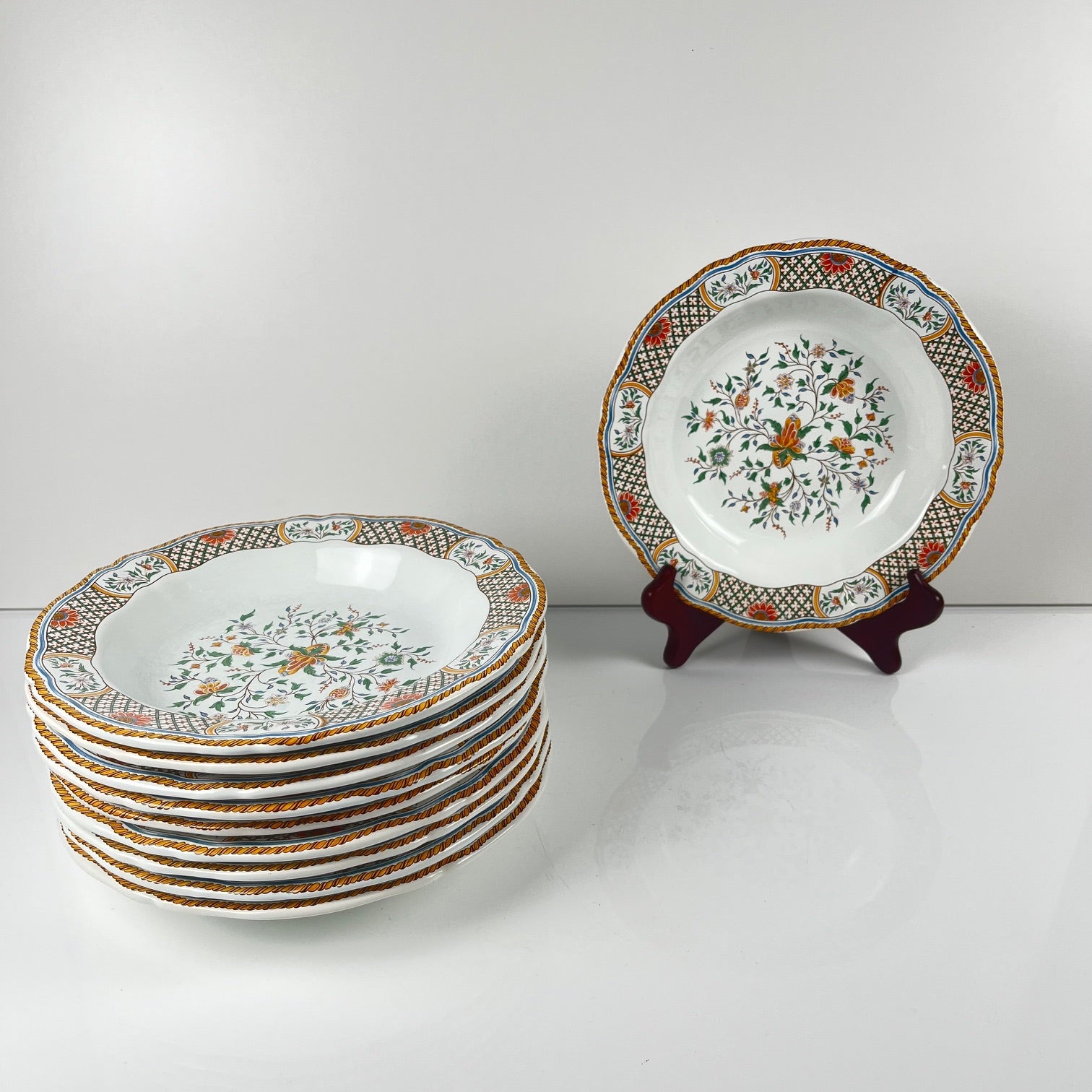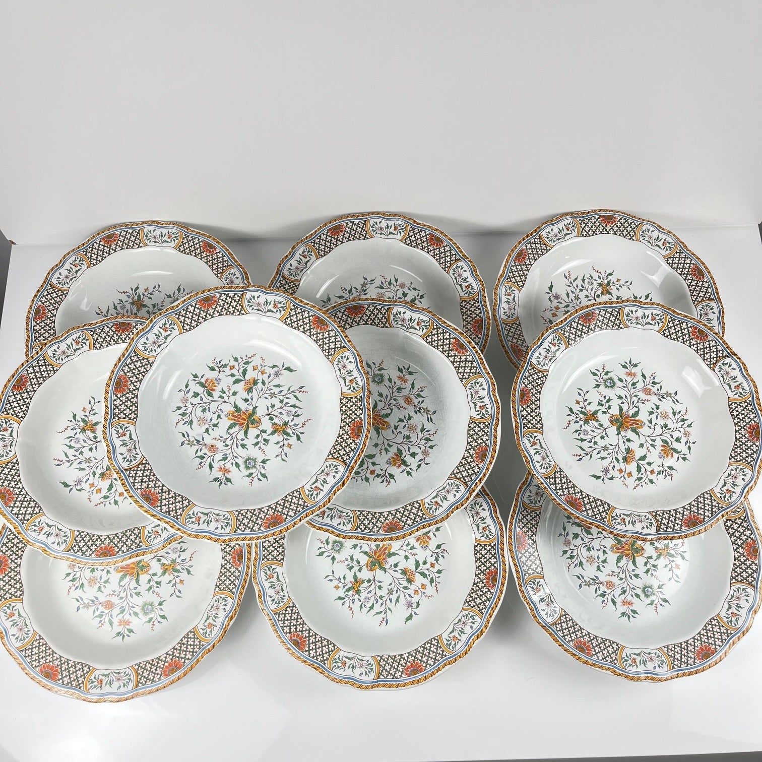 Lot de 10 assiettes creuses Gien modèle Rouen Sainfoin, 1990