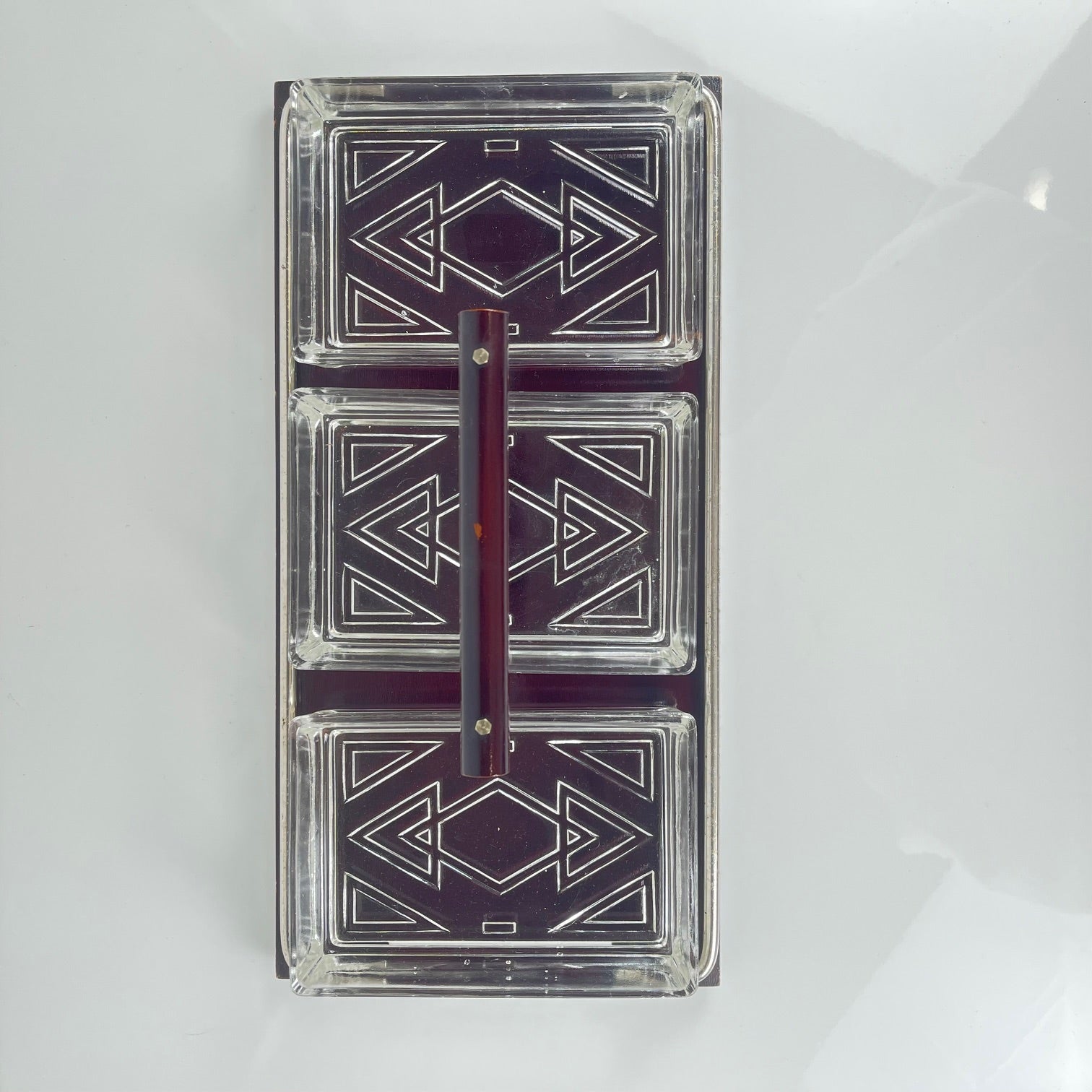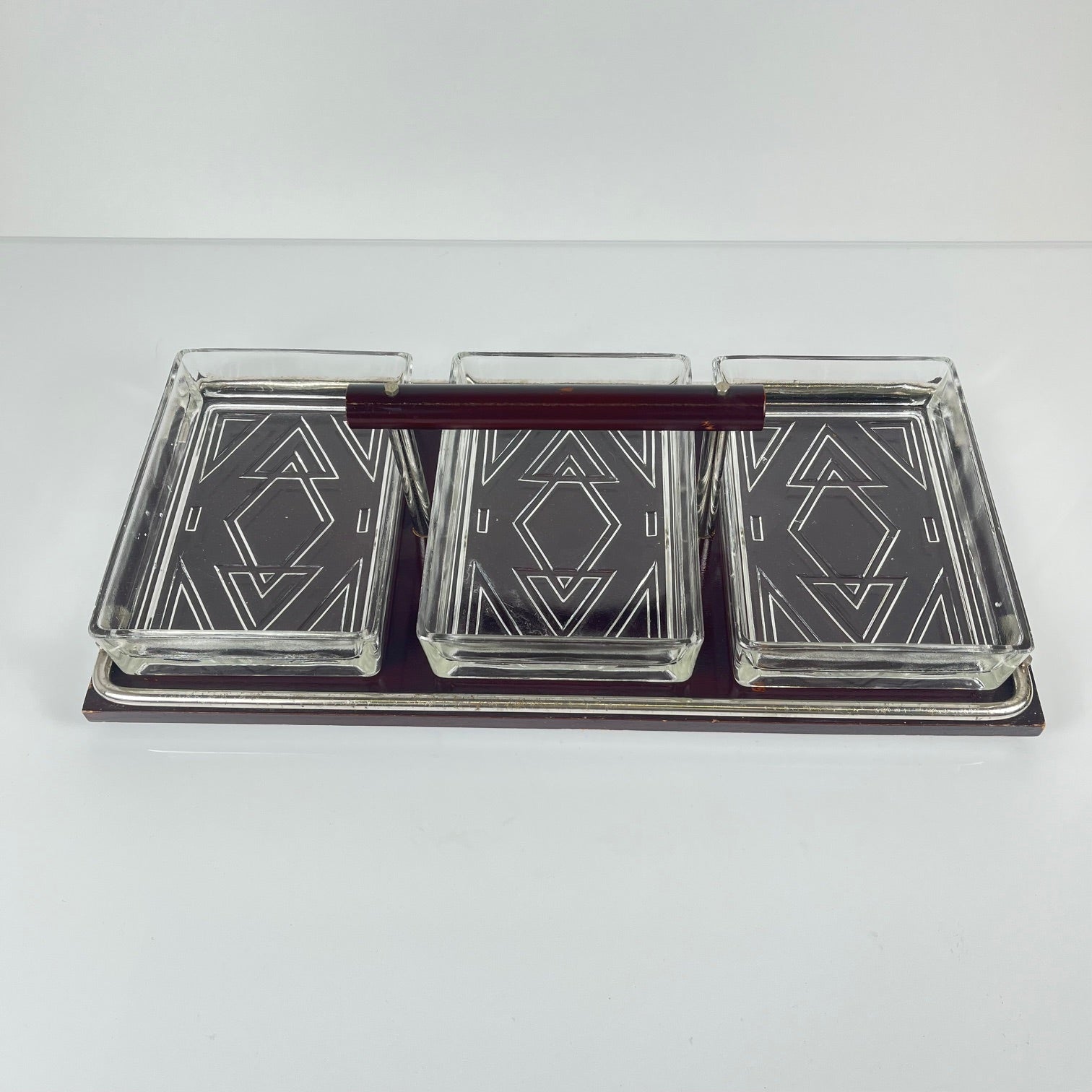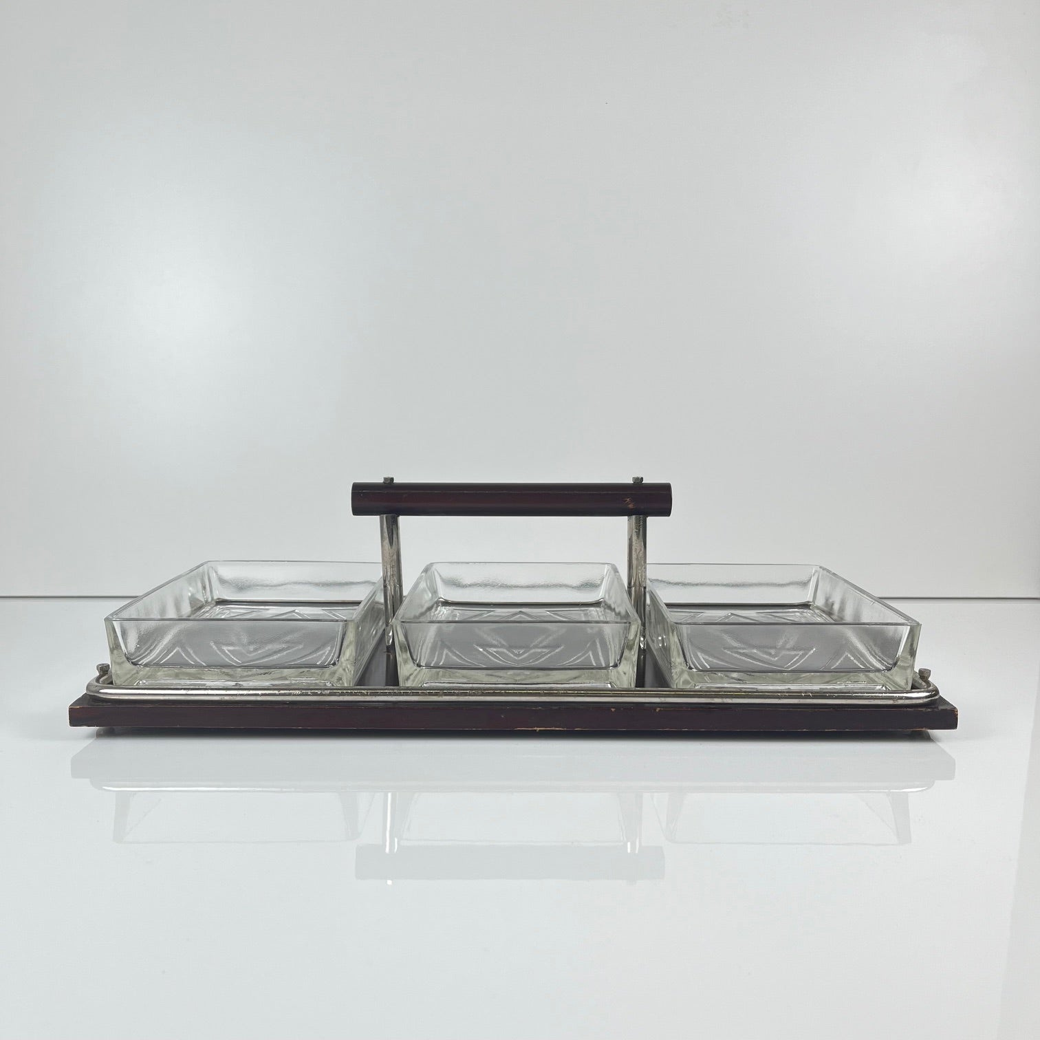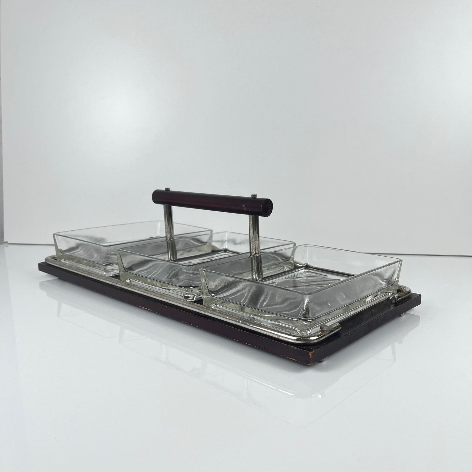 Plateau en bois avec poignée et 3 compartiments en verre