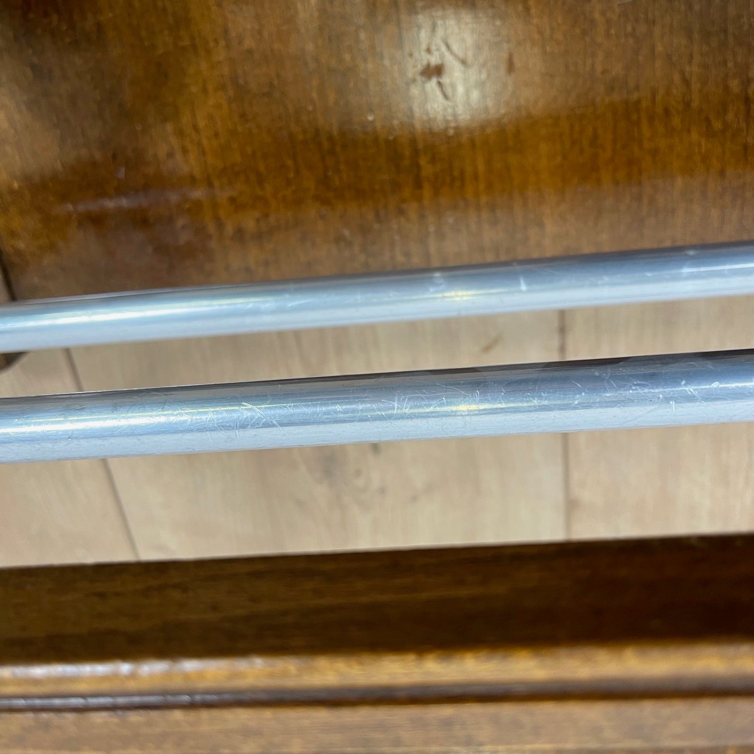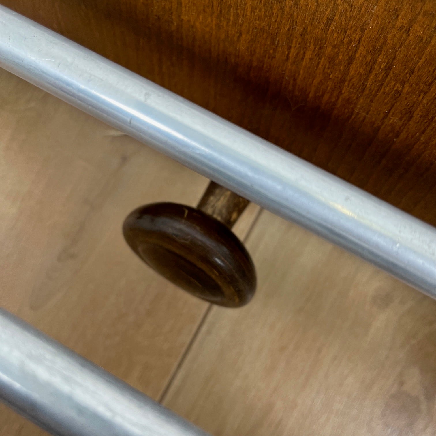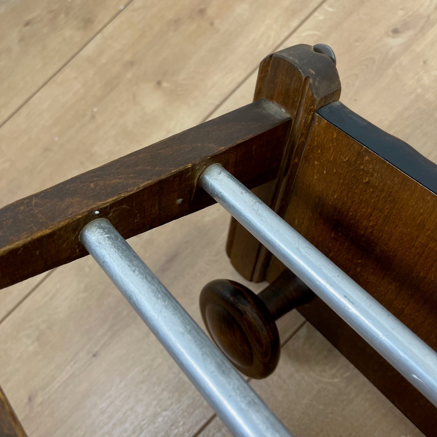 En bois massif teinté (probablement hêtre ou chêne)