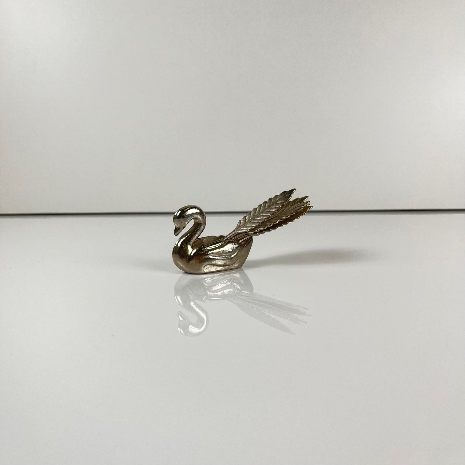 Porte pic vintage en forme de cygne, Métal argenté, 1970