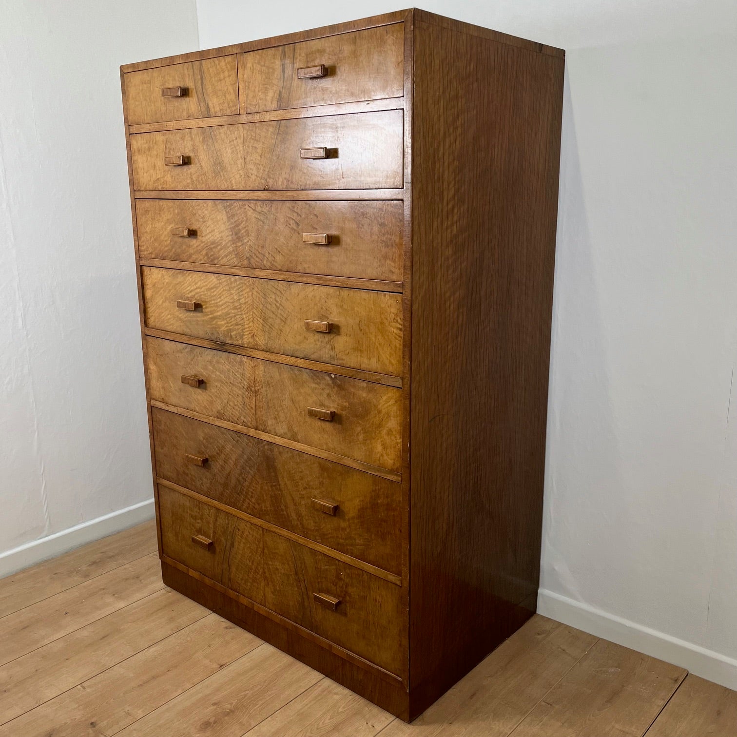 Rare Commode haute / semainier en noyer flammé art deco, 1930/1940