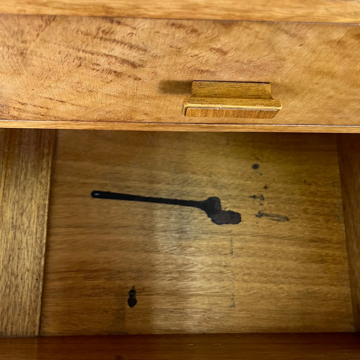 Objet ancien, conserve des traces et la patine du temps normal pour son âge : micro rayure + tâche sur le plateau, manque de placage à certains endroits ( 2 petits endroits sur la face avant, sur les bords et l'endroit le plus important de manque étant sur le coté gauche, en bas à gauche , voir photos)