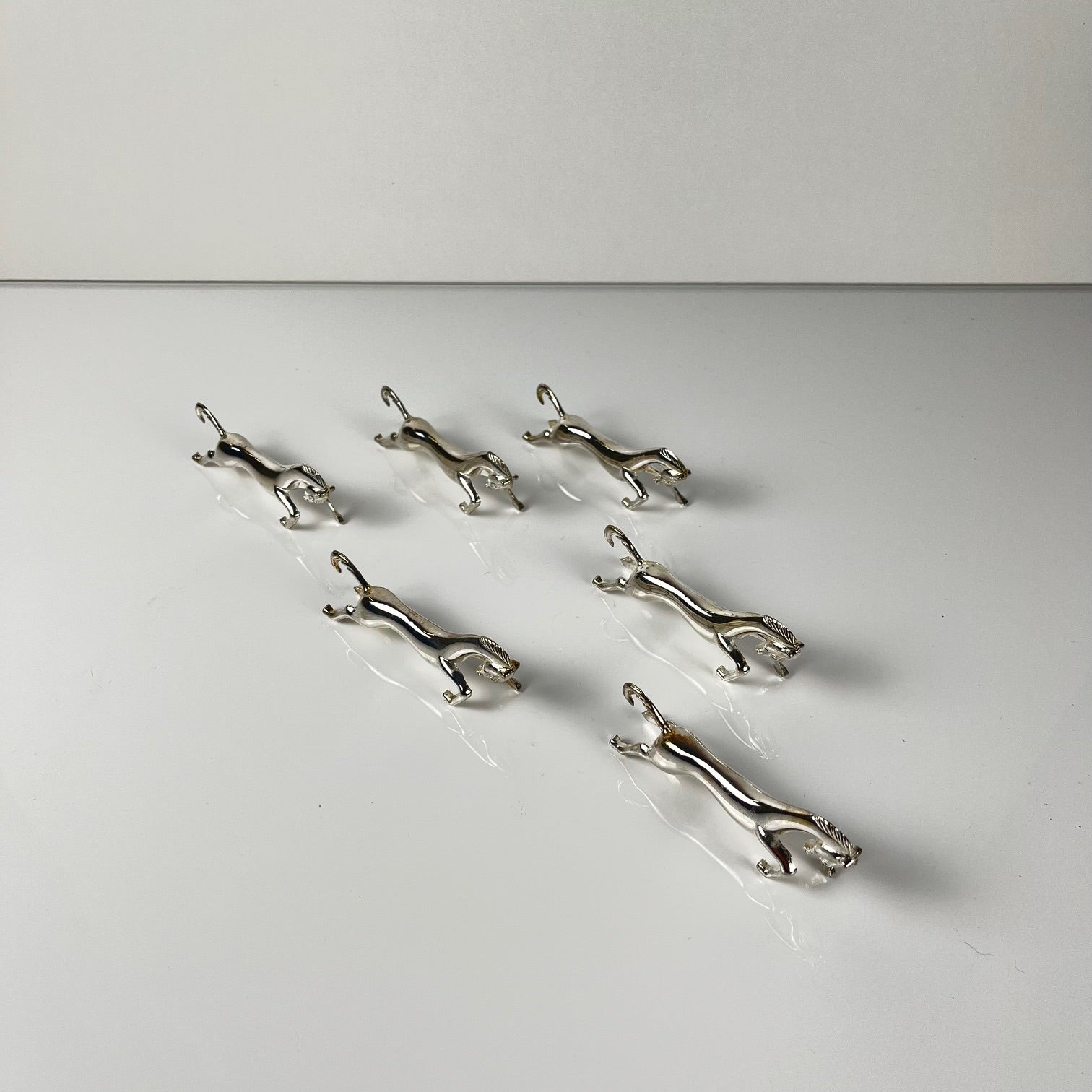 Set 6 Porte couteaux chevaux ancien en métal argenté
