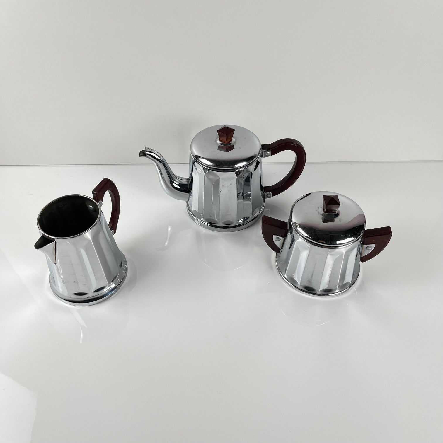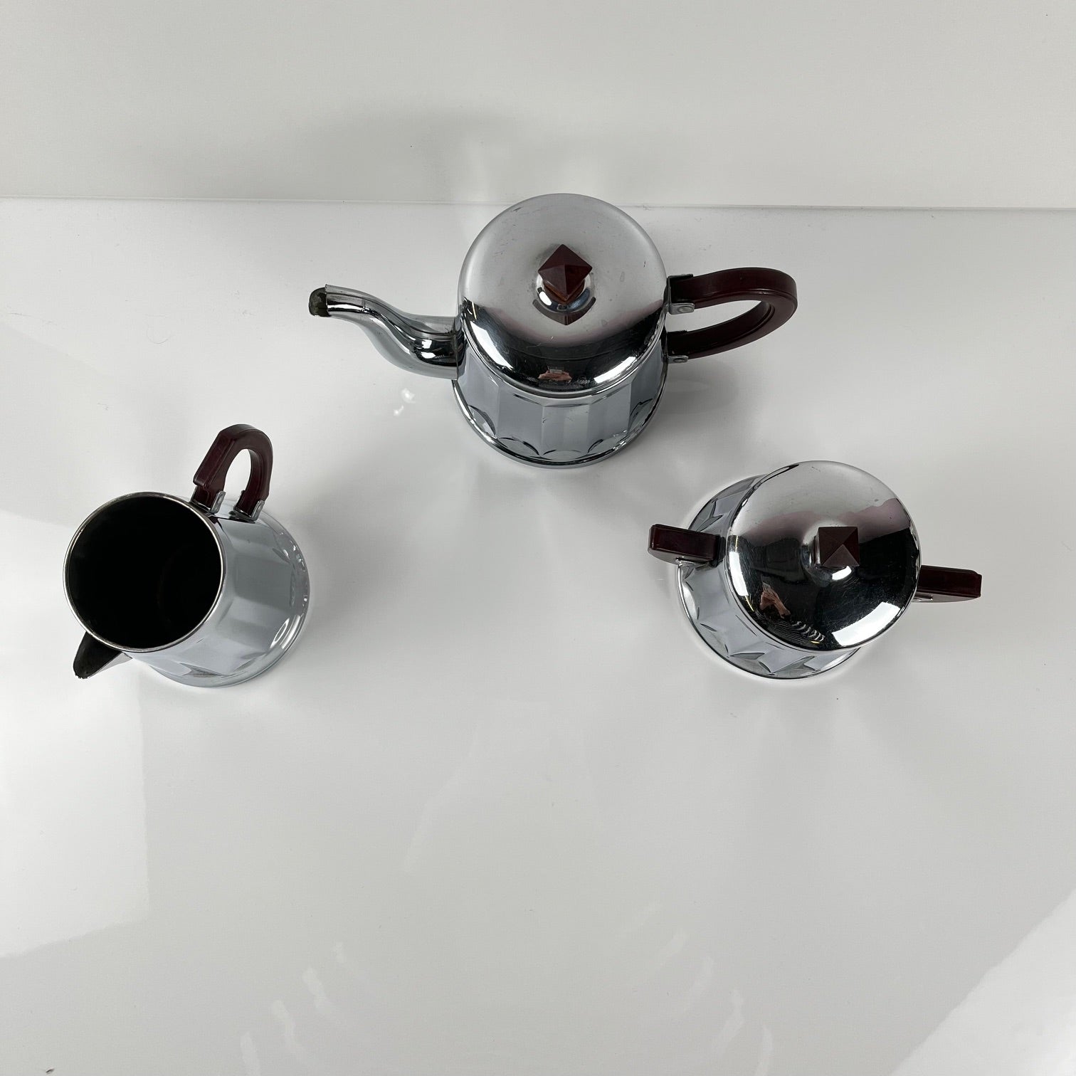 Set à café vintage en métal chromé et bakélite, années 1940/50