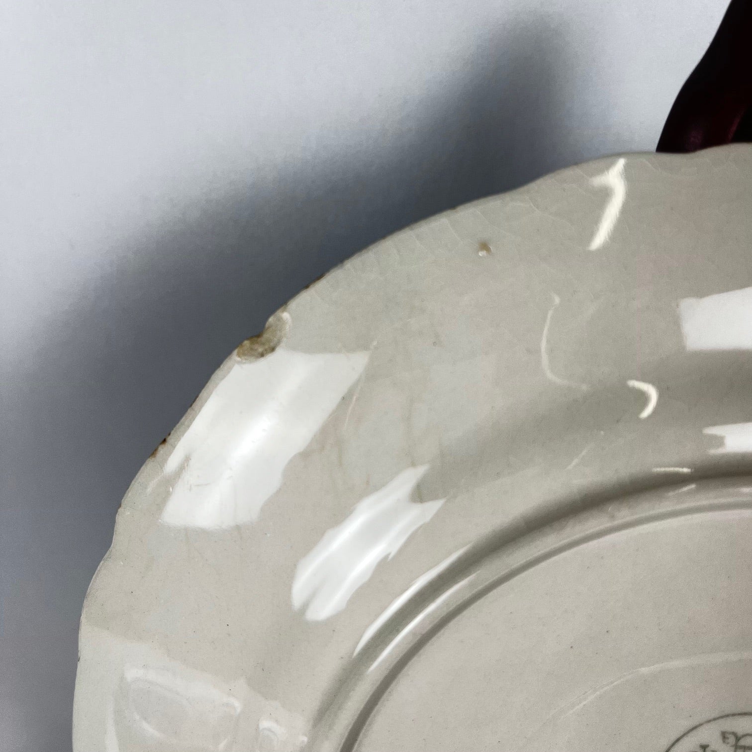 Bon état général, à noter : 1 assiettes avec un éclat sur le talon, 1 assiette avec 1 éclat sur le talon et sous le rebord, très peu visible du dessus, voir photos