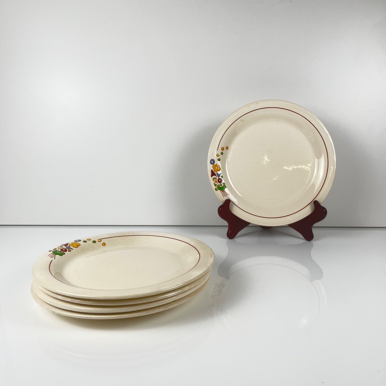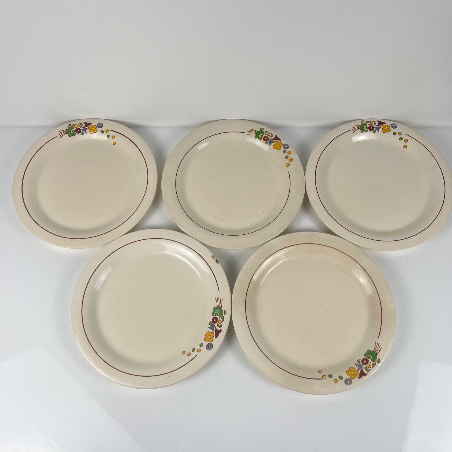 Set de 5 assiettes à dessert Longwy , début XXème s. , décor Floral