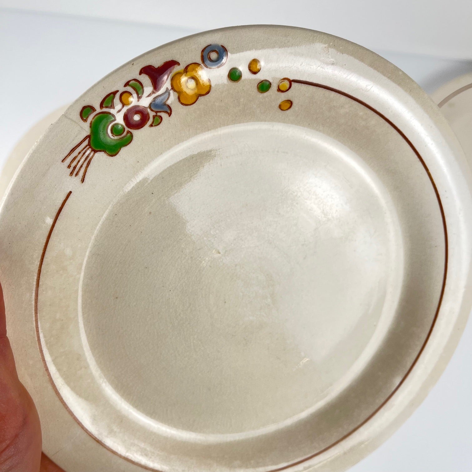 Bon état général, objets anciens, conservent des traces de fabrication et d'usage ( émail craquelé, micro rayure, décoloration, 2 éclats , voir photos)