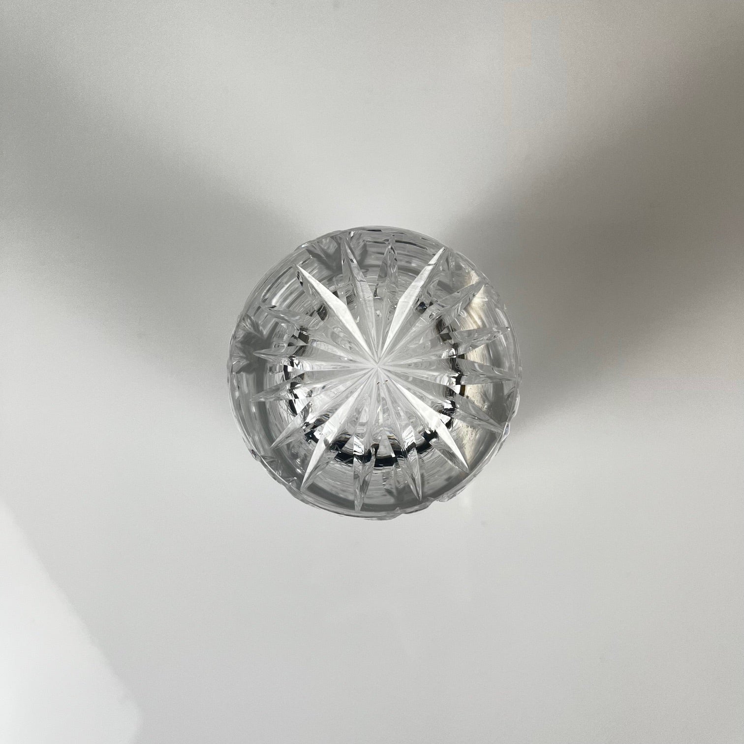 Ensemble de cinq verres en cristal taillé de Bohême, reconnaissables à leurs motifs géométriques profonds et leur fond ciselé en étoile. Leur transparence et leurs reflets en font de très belles pièces pour une table élégante ou une décoration raffinée.