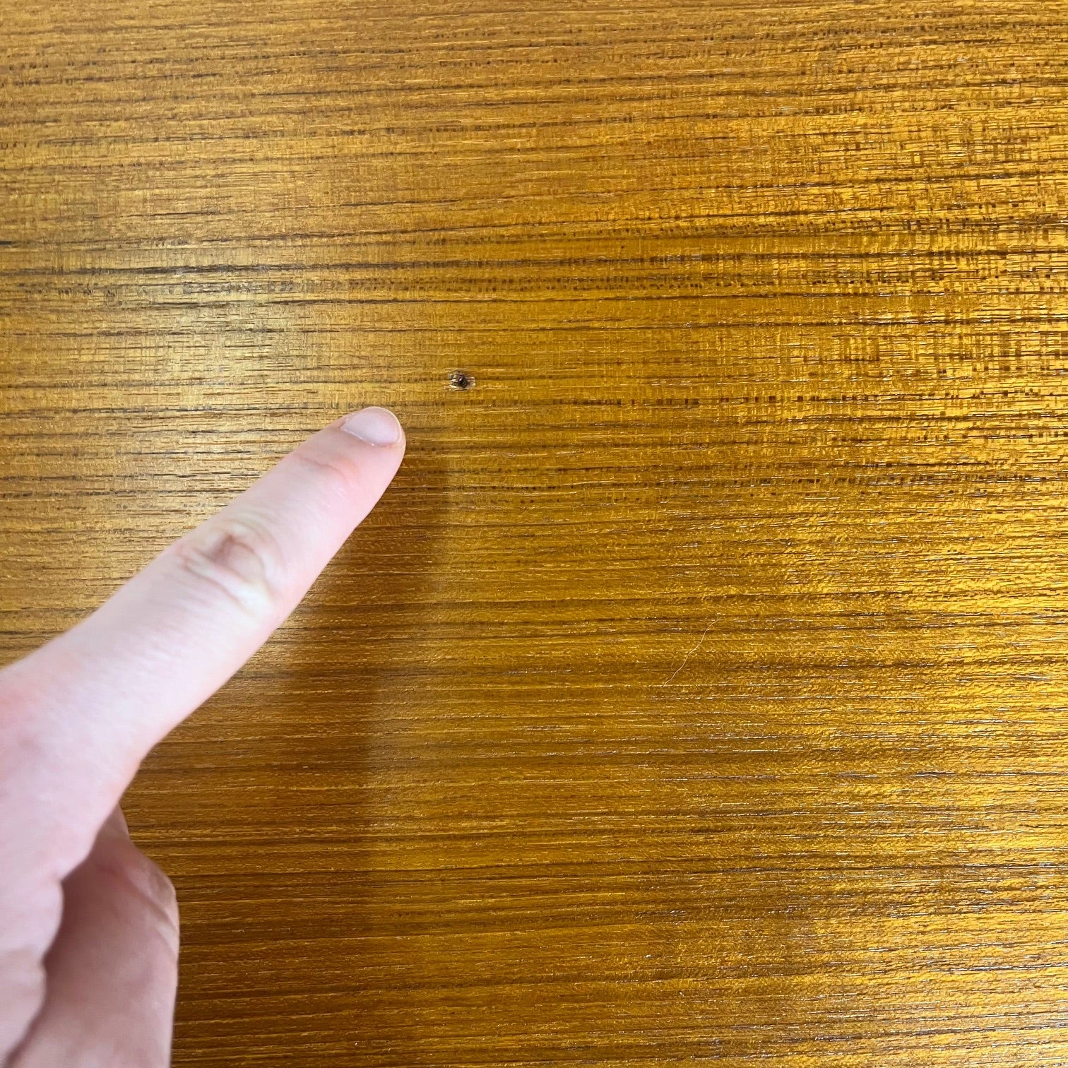 Très bon état général pour son âge. Présente deux petits trous sur le plateau ainsi que quelques griffes sur les pieds, sans incidence sur la solidité ni l’esthétique globale. Traces d’usage cohérentes avec un meuble ancien, voir photos.