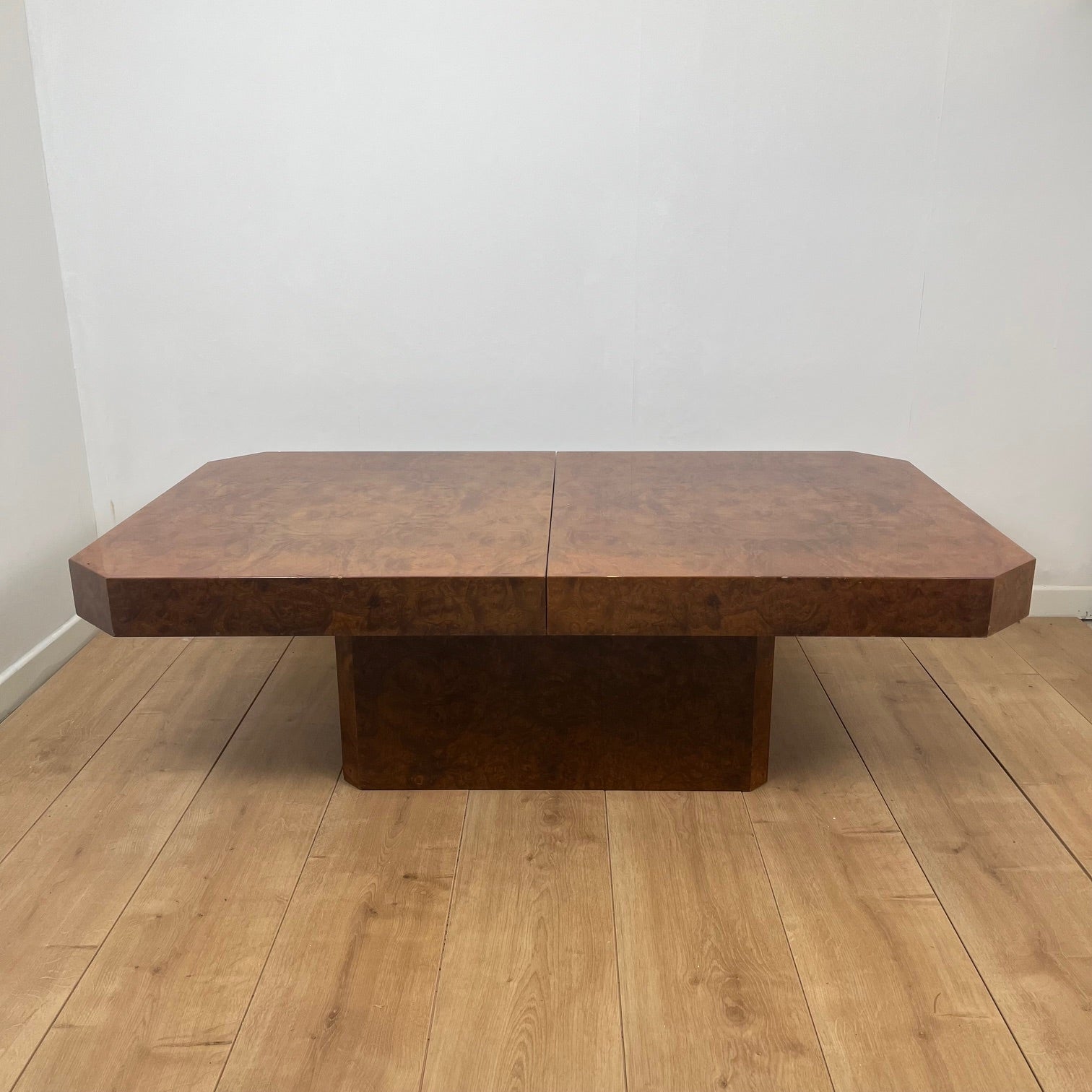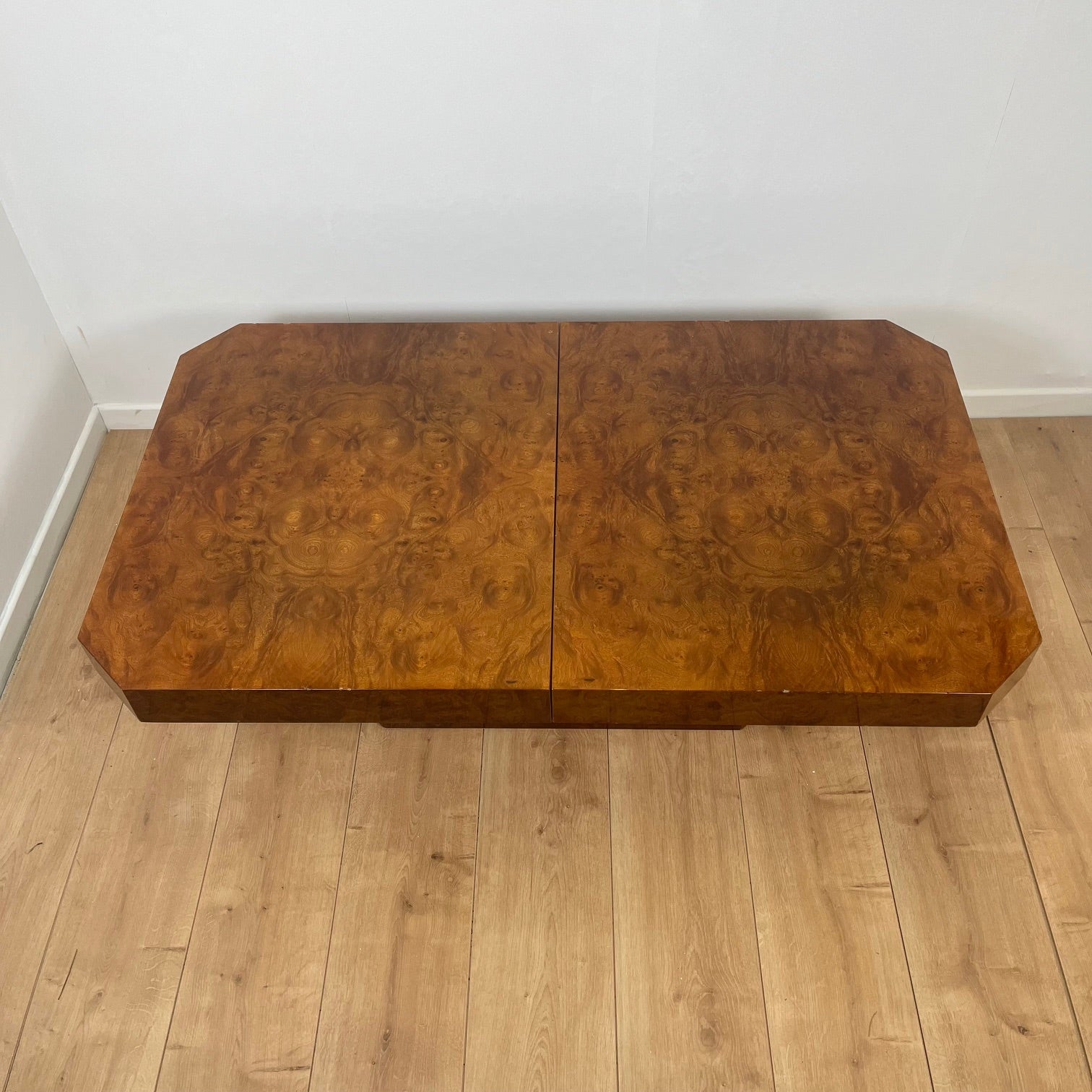 Table basse bar Art déco en loupe de bois – années 1930/1940