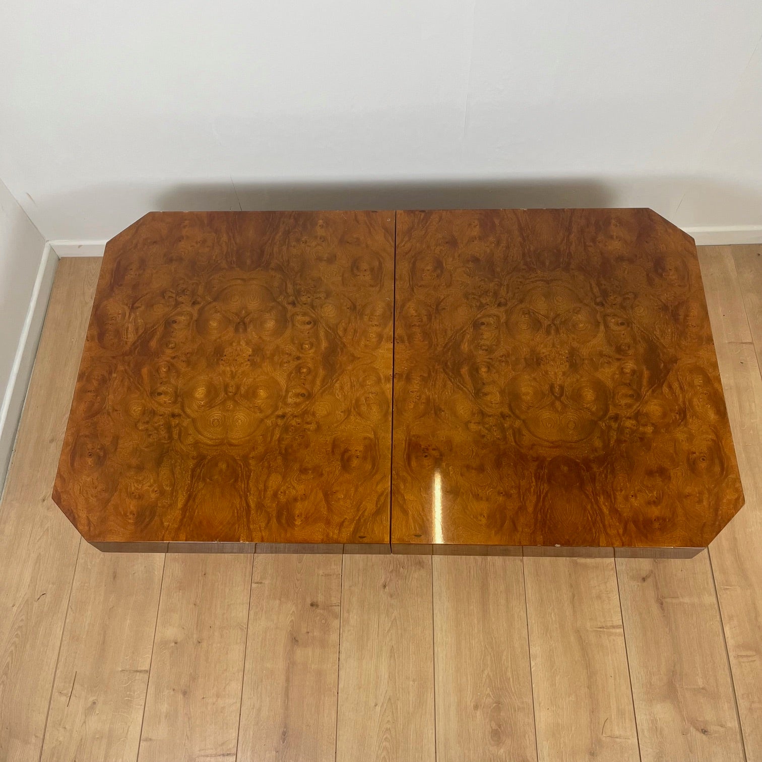 Placage en loupe d’orme ou ronce de noyer sur structure en bois massif.